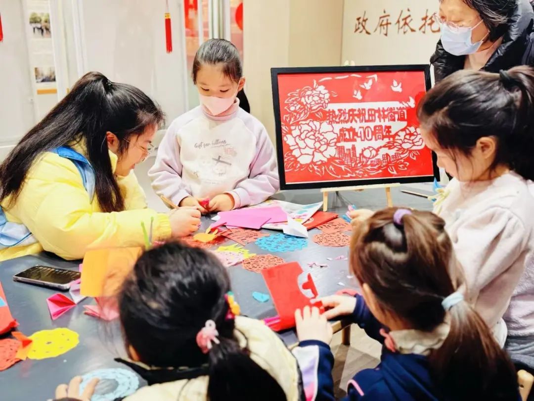 与此同时,各个居民区的活动也在如火如荼地展开。尚汇豪庭居民区邀请社区青少年齐聚一堂,在志愿者的指导下,开启了“欢天喜地中国年·花灯携福闹元宵”传统灯笼手工制作活动。折叠红纸、裁剪金边、组装骨架……孩子们全神贯注地跟着制作步骤操作,不到两小时,一盏盏色彩斑斓的灯笼便跃然眼前。