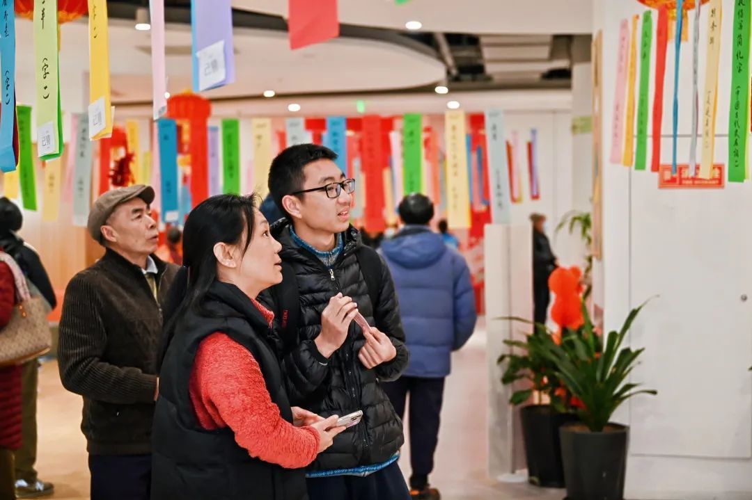 “不计前嫌,广为团结”(打一字)、“守信用”(打一党史地名)……500条精心设计的灯谜,全部由书画社的老师书写,除了传统谜面,廉洁、党史也与元宵民俗碰撞出了“火花”。一场悄无声息却激烈无比的“头脑风暴”就此上演。现场居民或低头沉思,或互相讨论,有的眉头紧锁,有的豁然开朗。兑谜区人头攒动,一条条灯谜很快被“消灭”,现场气氛热烈而有序。