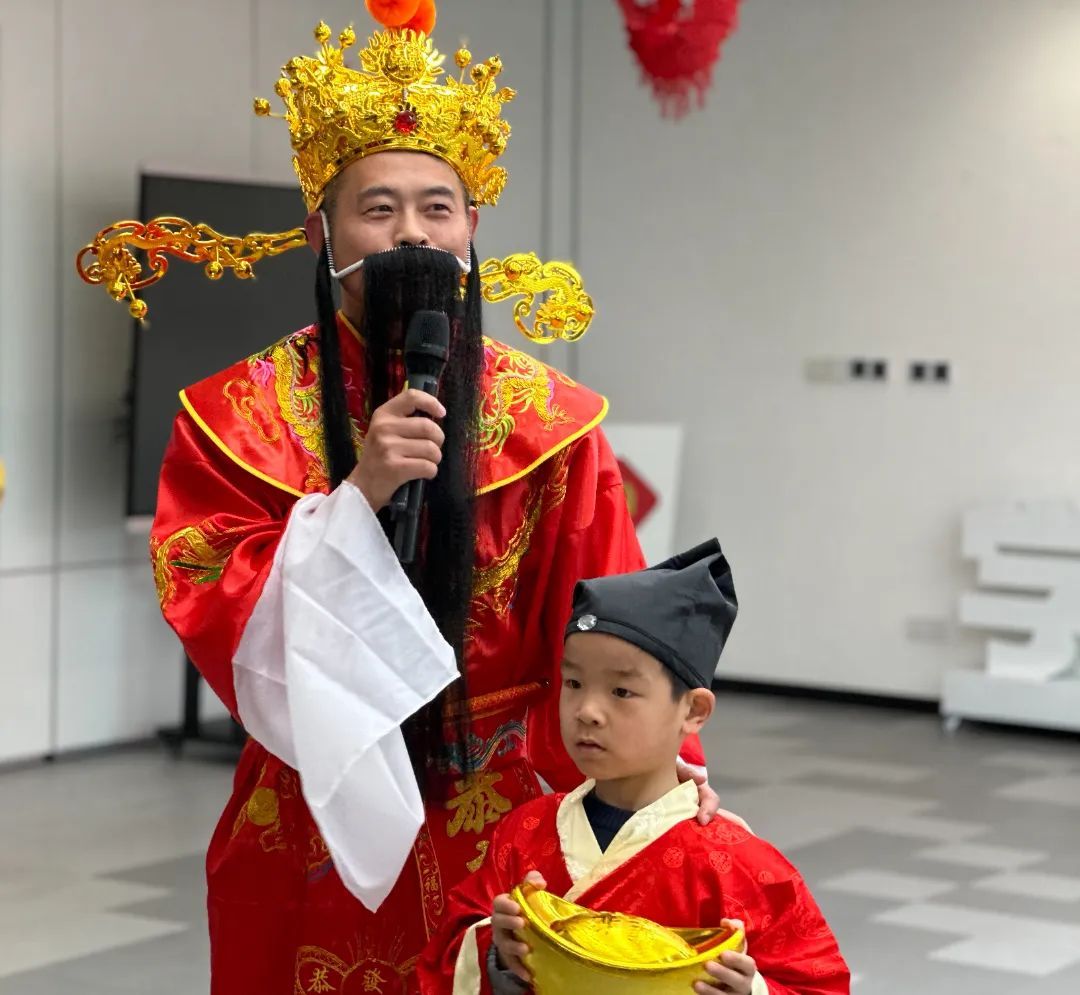 随着大家耳熟能详的“恭喜发财”旋律响起,身着彩衣的财神爷捧着元宝闪亮登场,为大家送上新春的祝福和财运亨通的祝愿。居民们争相与财神爷合影留念,都想在这乙巳蛇年之初蹭一蹭这份吉祥的喜气。