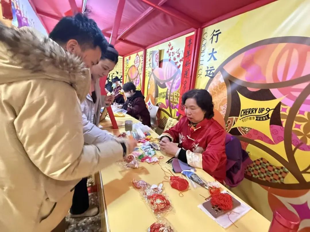 元宵佳节当天,徐汇区漕河泾街道总工会再次与万科商场合作,精心策划了“非遗闹新春”文化雅集,充实楼宇职工的午间一小时,延续返岗后的年味。现场设置了多个非遗展示摊位,涵盖了龙凤字、糖画、面人、香囊、编手绳和草编等多种传统工艺,吸引了大量楼宇职工和消费者前来参与和体验。