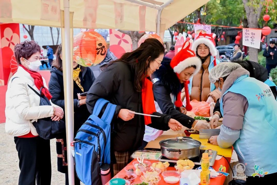 活动现场张灯结彩、丝竹齐鸣,伴随着清脆悦耳的曲调,白鹤丝竹班队员们随乐演奏各色丝竹乐器,或吹或拉或弹或击,交织出一曲曲经典乐章。妙趣集市、灯谜寻宝、白鹤春宴、驻唱展演等项目在“蛇游新岁妙趣会”集中上演,不仅有展示炀粉粥、糕点等极具白鹤特色的元宵食味,还汇聚了金银花丝编结、灰汤粽、石板印刷、古法制香等众多青浦区非遗项目。