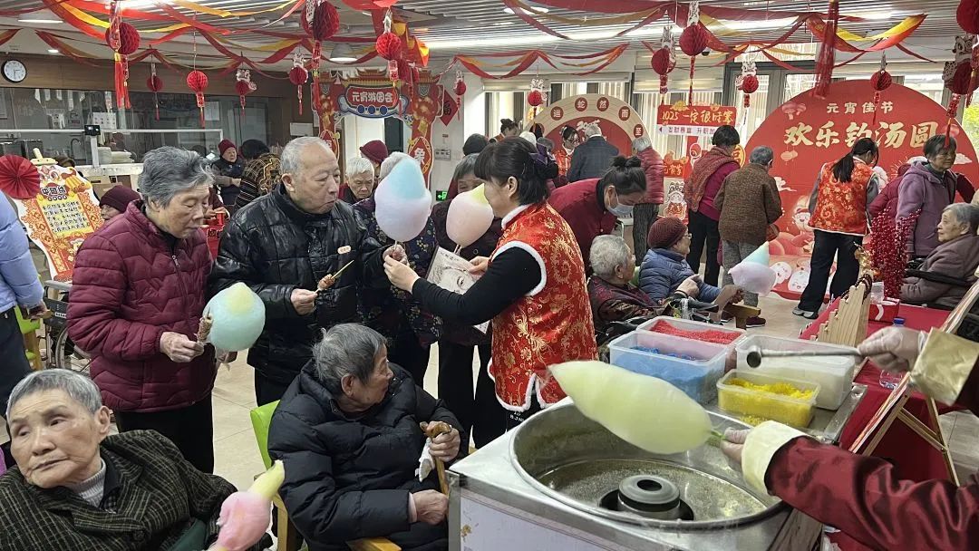 为了让住养老人也能共享元宵节的欢乐,近日,杨浦区福象新江湾城老年福利院举办了一场元宵游园会,老人们一边逛、一边吃、一边玩,重温小时候闹元宵的乐趣。