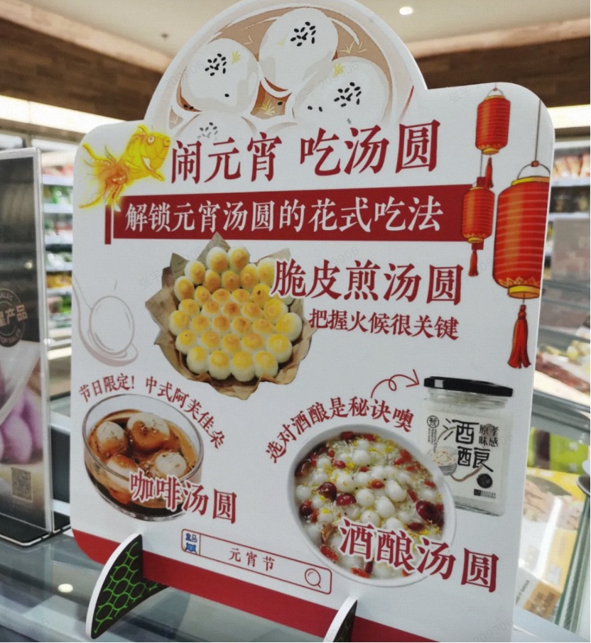 记者走访盒马鲜生静安PAC购物中心店发现,消费者在冷柜前挑选着各式元宵汤圆。橙色柿子造型的汤圆寓意事事如意;大黄米做成的元宝汤圆泛着“金光”,寓意日进斗金;汤圆表面贴上“汪星人”的脚印,代表着旺财。