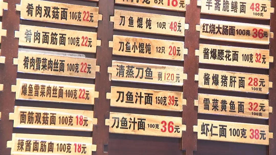 目前,老半斋的刀鱼汁面依旧维持前几年的价格,刀鱼汁面2两36元,3两39元,清蒸刀鱼120元一条,刀鱼馄饨48元10只,刀鱼小馄饨20元12只。