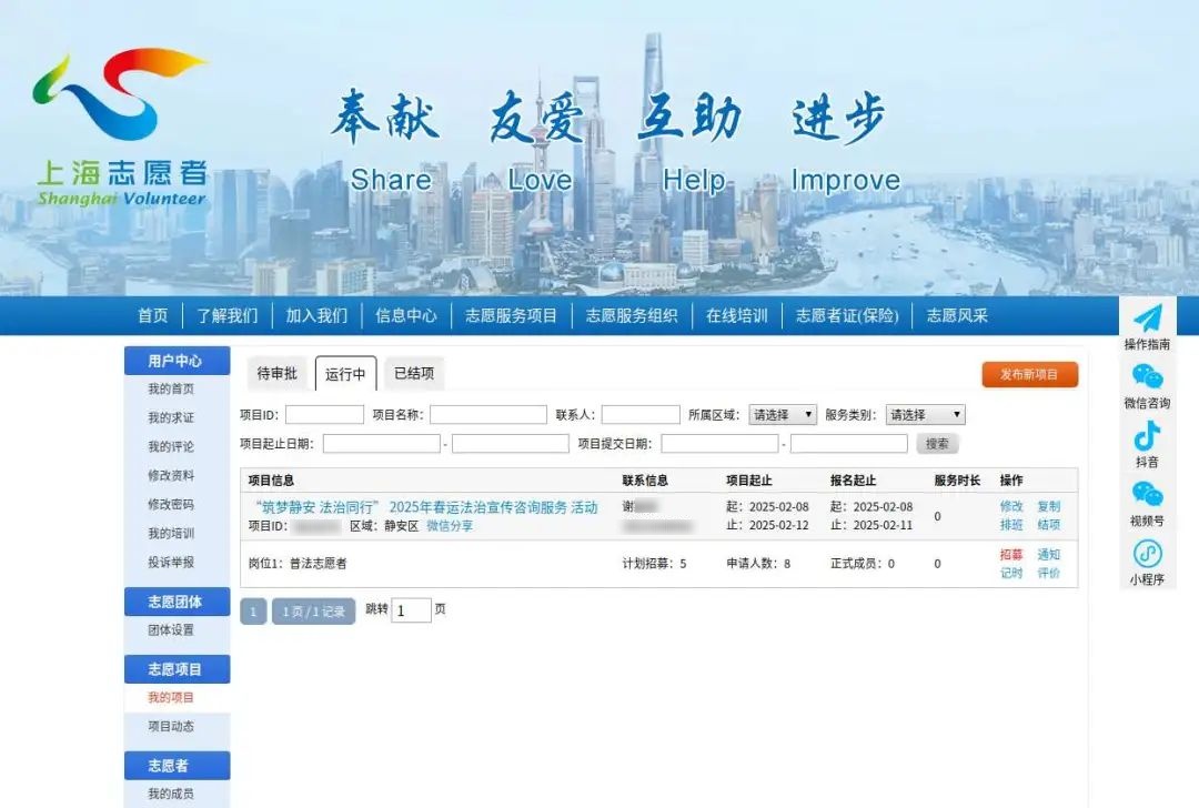 据介绍,此次活动开展前夕,主办方在上海志愿者网上发布志愿项目,向社会各界公开招募普法志愿者。