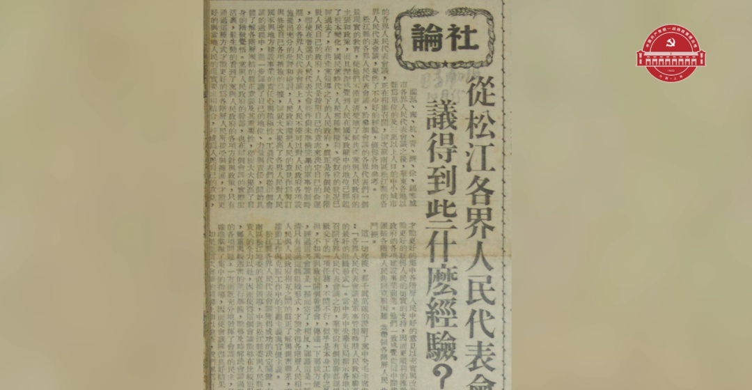 10月12日,《解放日报》发表了题为《从松江各界人民代表会议得到些什么经验》的社论,将松江经验归纳为:一、代表的广泛性;二、预先召开农民代表会议;三、充分发扬民主,产生了深远的历史影响。