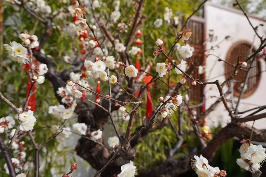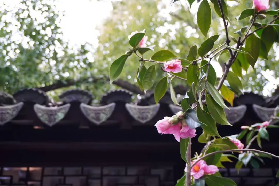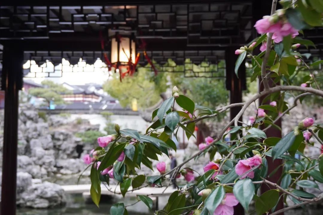 沿着回廊漫步,随处可见枝头的茶梅、腊梅,粉红如霞,金黄如麦,还有墙角不知名的花卉,给料峭的春景点缀了一抹鲜艳的暖意。让人不禁感叹,二月的豫园,既有冬的韵味,又有春的生机!