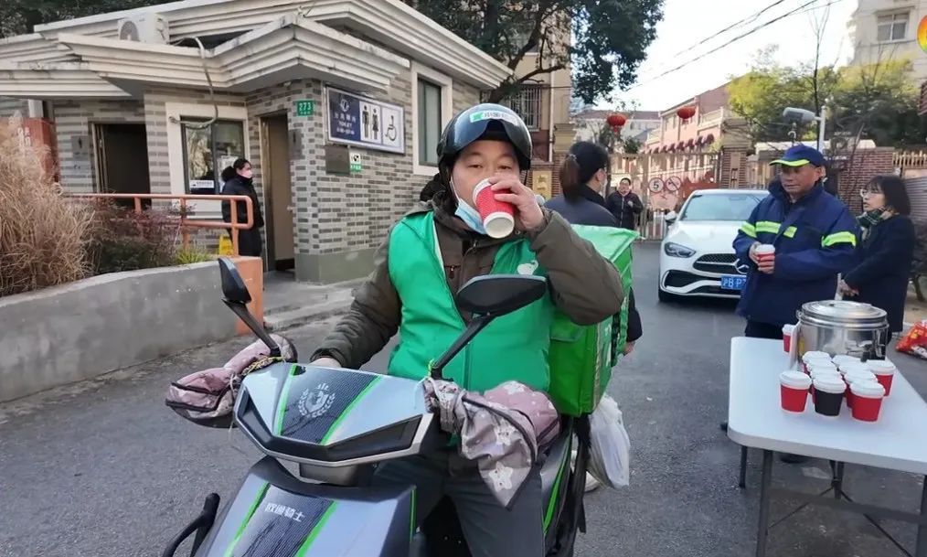 “快递员、环卫工人等新就业群体也是我们城市建设的主力军,我们想用自己的行动,也为他们服务一下。”居民区党总支书记朱莹说,“他们都是室外工作,又经常早出晚归,很辛苦,现在天气冷,我们就想到通过送爱心暖茶的方式,让他们感受到多一点温暖。”朱莹介绍,有了这个想法后,居民区在党总支牵头下,发挥党建引领作用,组织小区志愿者一起准备,并选择在早上的小区门口,为新就业群体发放暖心茶饮。