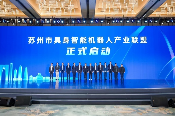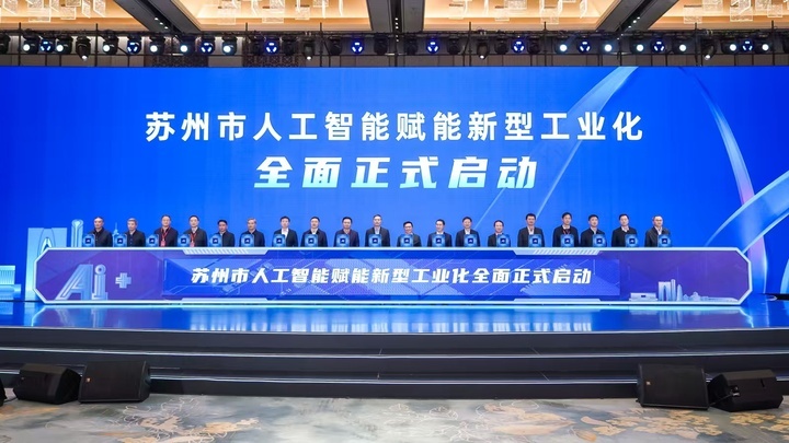 苏州为苏州市人工智能创新应用实验室、苏州市AI青年创业园、2024年度苏州市人工智能重点企业、苏州市人工智能创新联合体、江苏省独角兽企业授牌;《苏州国家新一代人工智能创新发展试验区发展报告》、新材料数据中心(主平台)建设方案、苏州市级培育人工智能大模型、苏州市“人工智能+”典型场景案例、苏州市首批行业高质量数据集、“人工智能+”领域标准成果发布;苏州还点亮苏州国产化智算资源池,启用苏州市具身智能机器人产业联盟,并聘任人工智能实验室专家。
