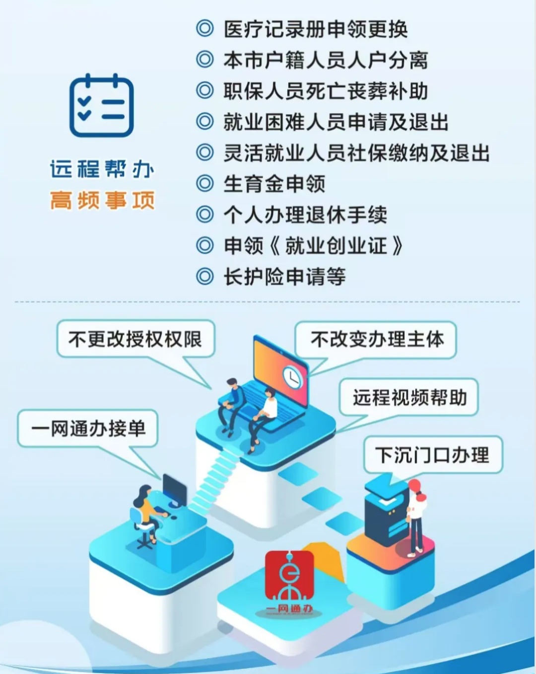 “远程帮办”让老百姓不出家门口,就能在小区里把业务办结。家里有老人的居民特别注意了,换医保记录册、申请长护险、门诊大病登记、敬老卡申领等事项,现在在家门口就可以办理了。
