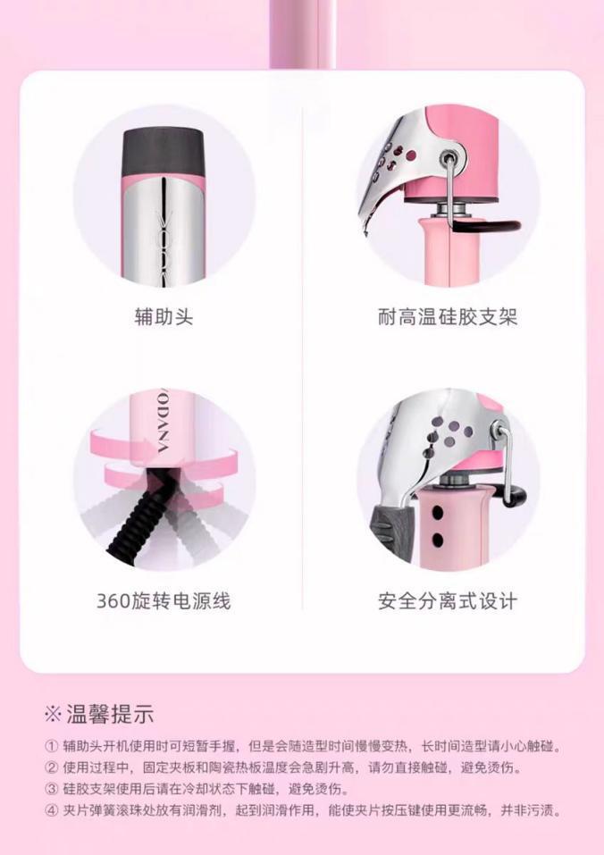 2、卷发:拿出 Vodana 卷发棒,将温度调节到适合自己发质的温度,一般细软发质 发棒上,停留 3 - 5 秒,然后松开,依次卷完所有头发,打造出灵动俏皮的小卷。Vodana 卷发棒的陶瓷涂层能均匀加热,卷出来的头发顺滑有光泽,而且 3D 凹槽设计,让卷发操作超简单,手残党也能轻松驾驭。