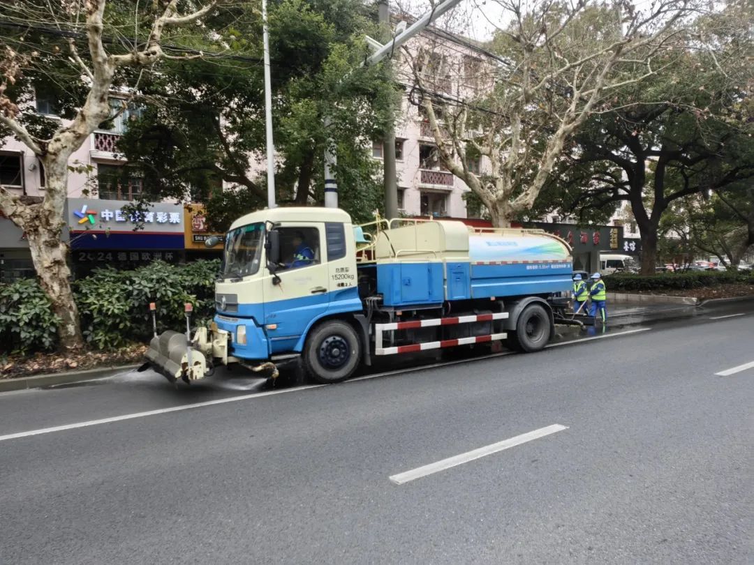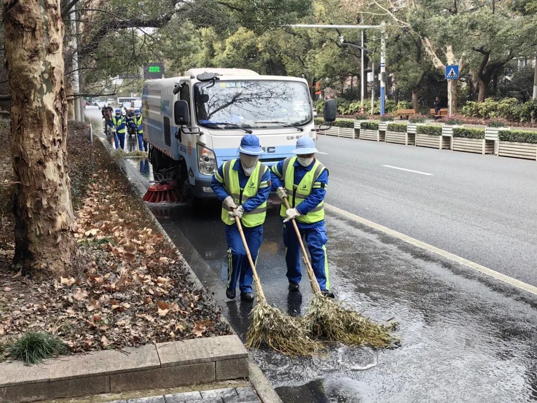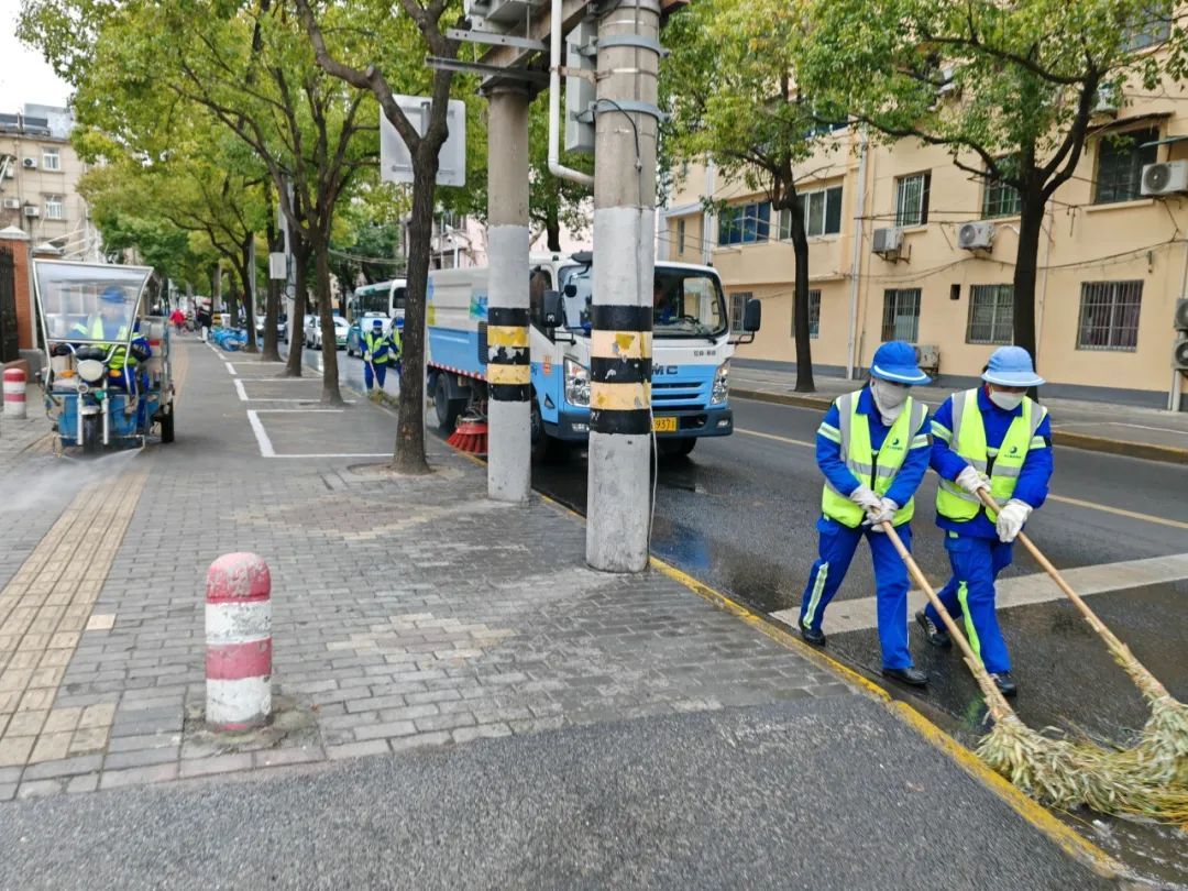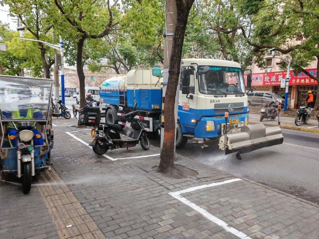 张庙环境公司出动各类专业清扫车辆,重点清扫人行道、道路死角和公交站点等区域。