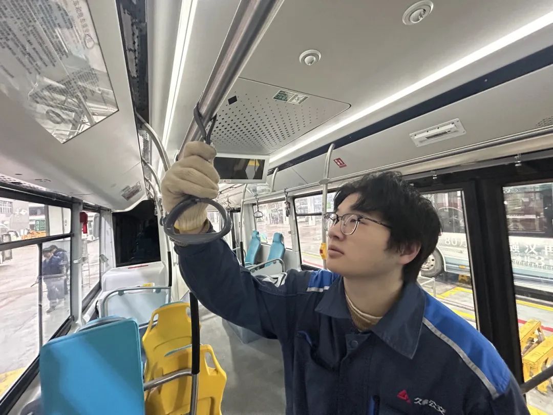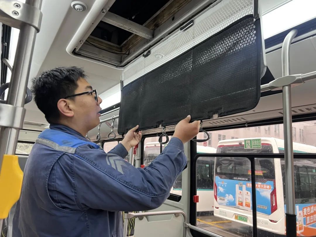 面对春季开学后客流高峰与多变天气的双重考验,修理车间启动“预防+夜间”双线维保模式,大宇、申龙、纪念等班组认真做好车辆保养。大宇班组相关负责人向记者介绍:“我们组织了三十余名维修技术骨干,加强对保养车辆刹车制动性能的检测,强化对拉手、栏杆、安全带等服务设施的检修,此外还组织四十名职工从夜间十点至次日凌晨两点半,对宝杨路、纪念路、共祥路、友谊路停车场的954辆夜间进场车辆进行全覆盖式夜间安全检查,逐一排查安全隐患,重点检查了车辆轮胎、电瓶、安全锤、灭火器及车辆服务设施,及时处理机舱积灰、油污、灭火器管老化等小故障18个,保障车辆能正常投入次日的营运。”