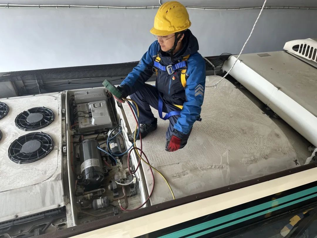 空调班组相关负责人表示:“自2月5日起,全面启动对承修车辆的冷空调系统专项维保,重点针对冷凝器、蒸发器、风道等核心部件进行精准维护,采用高压冲洗技术深度清洁通风系统,同步更换新风过滤海绵等耗材,并加强功能测试、风量检测、温度校准,确保空调系统运行稳定可靠,为莘莘学子和市民乘客营造一个清新舒适的用车环境。”