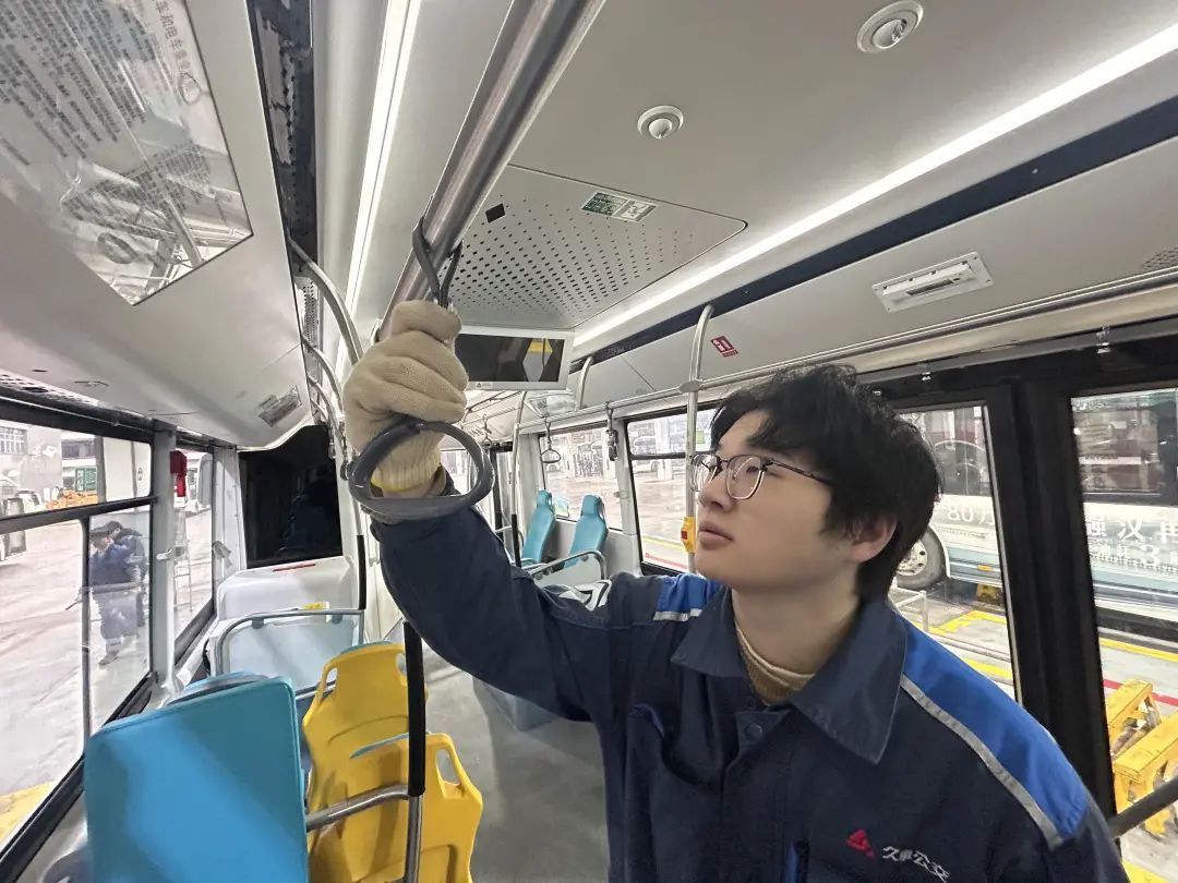 聚焦“精细维保”,双线并进守安全。面对春季开学后客流高峰与多变天气的双重考验,修理车间启动了“预防+夜间”双线维保模式。大宇班组组长赵辉介绍,车间组织了三十余名维修技术骨干,加强对保养车辆刹车制动性能的检测,同时对拉手、栏杆、安全带等服务设施进行了细致检修。