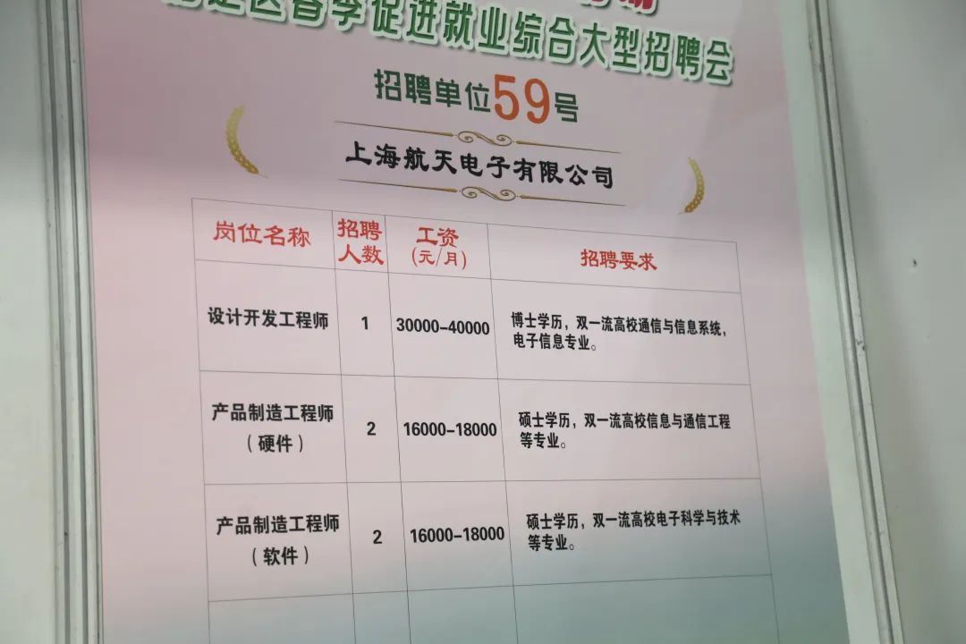 在上海郎旦科技集团有限公司摊位,遥感相机整机设计师岗位的30000元月薪标识吸引求职者驻足。记者注意到,除了遥感相机整机设计师岗位,硬件工程师、CNC编程等岗位薪酬也在招聘市场中处于中上水平。