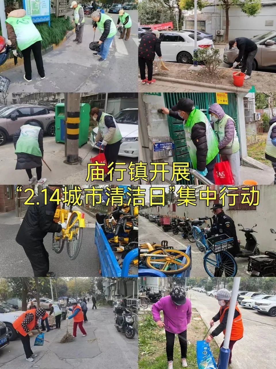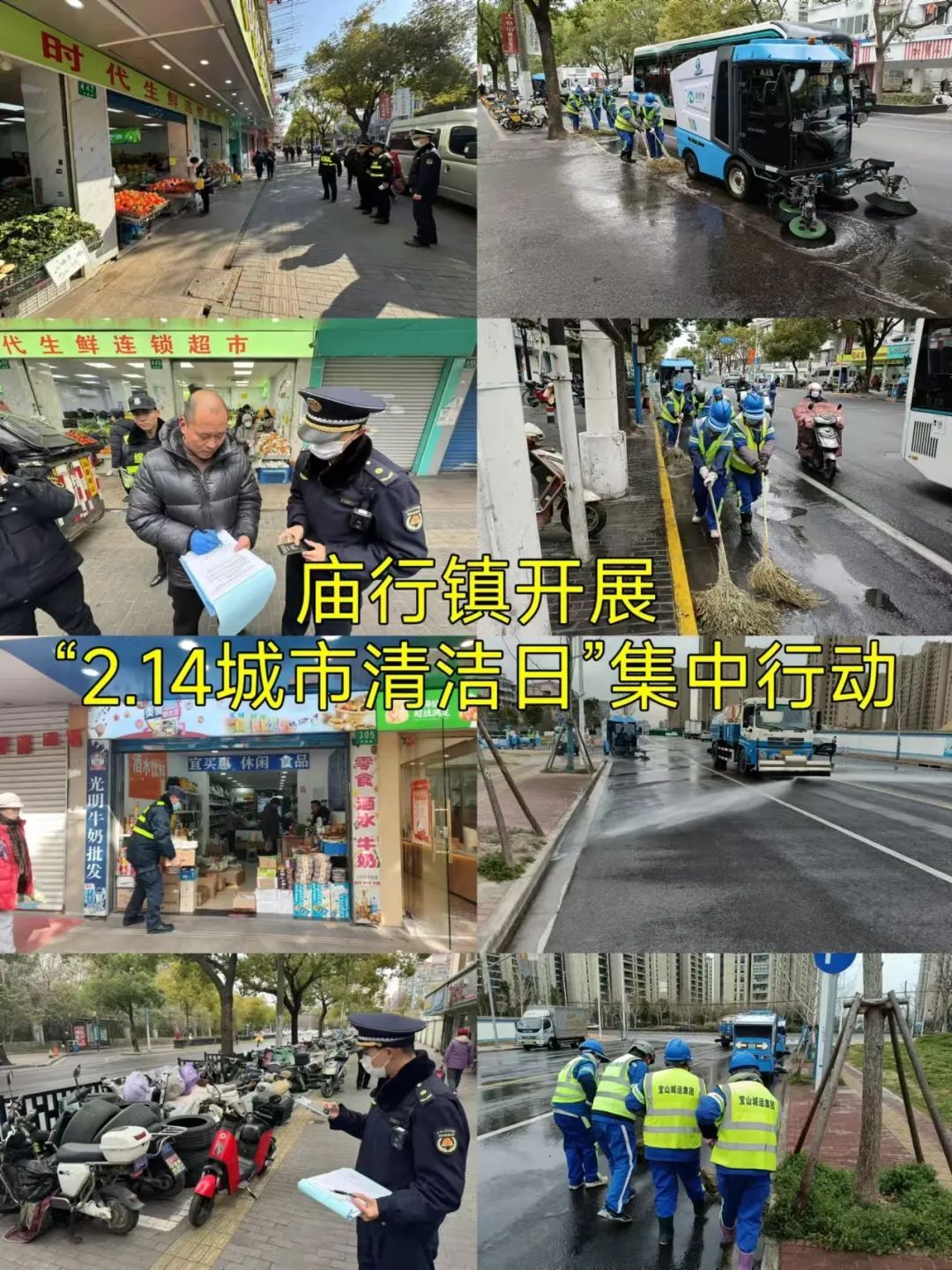 庙行镇在共康路、泉临路以及各居民区等点位开展“城市清洁日”集中行动。社区志愿者们对小区开展环境整治,捡拾绿化带垃圾,清理乱张贴,清整共享单车乱停放等;镇综合行政执法队在共康路沿街商铺开展跨门经营专项整治,一方面耐心向经营者讲解法律法规,另一方面主动帮助商户搬运占道物品;张庙环卫针对薄弱区域开展道路大冲洗,对共康路人行道地面严重污渍进行精细化保洁。