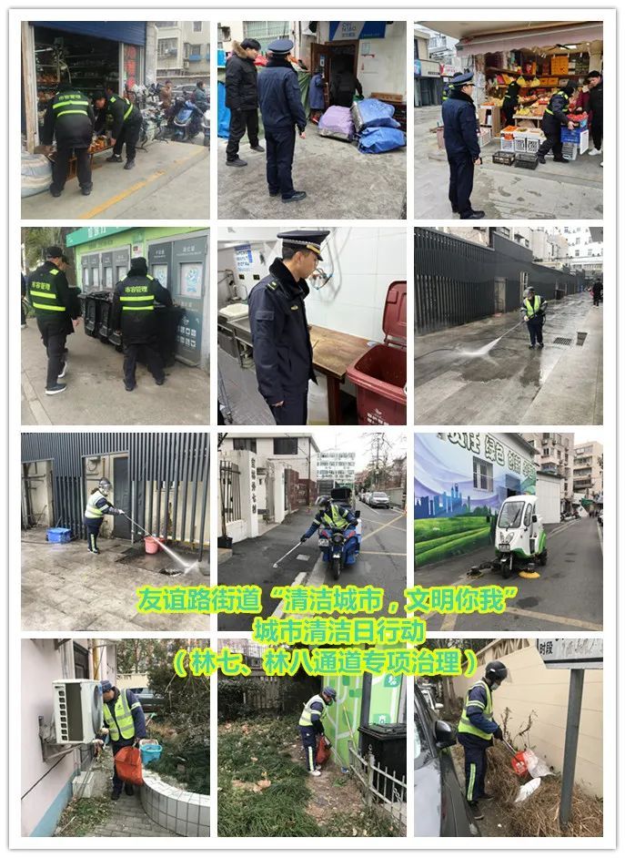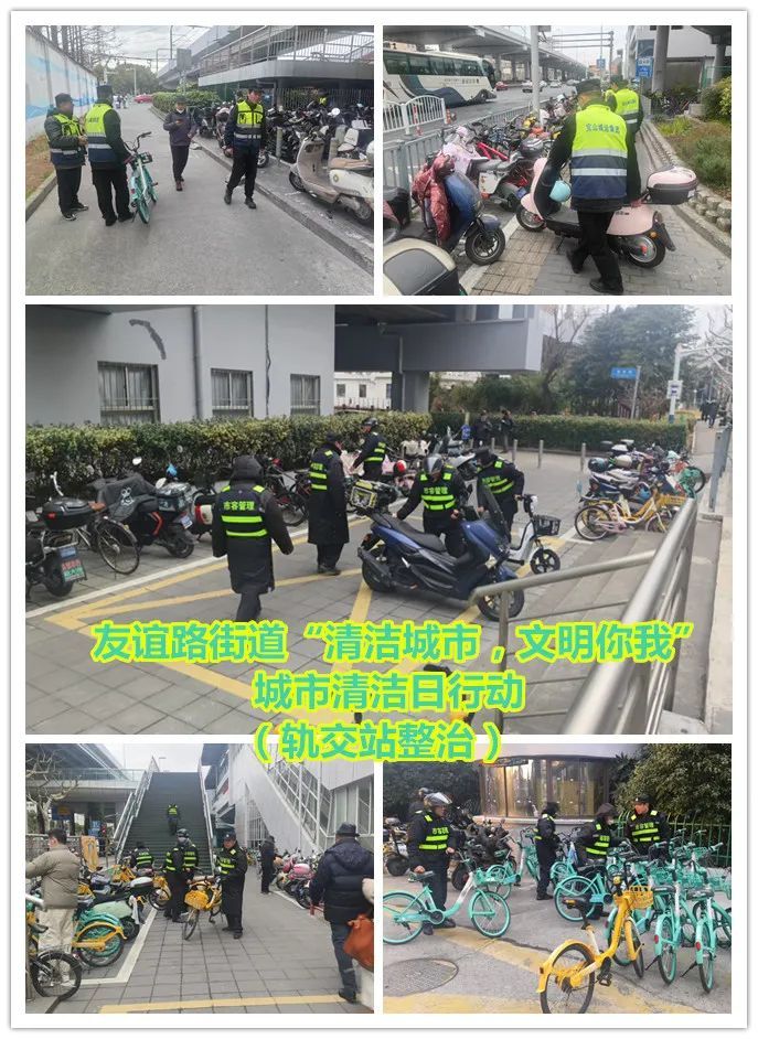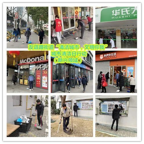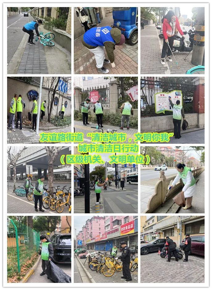 友谊路街道充分发动党政机关、企事业单位、居民区等志愿者力量,以及综合执法队、环卫等职能部门等共同参与。在小区,居委物业和志愿者们一起清除乱堆物、整治乱停车、垃圾厢房清理等;在街面,机关干部、职能部门与街区新兴领域党组织一起,重点对宝林七村外通道、宝林八村通道及周边等薄弱区域、东林路、密山东路等道路以及两个轨交站点开展道路清扫、非机动车无序停放清整、跨门营业、垃圾分类宣传等集中行动。
