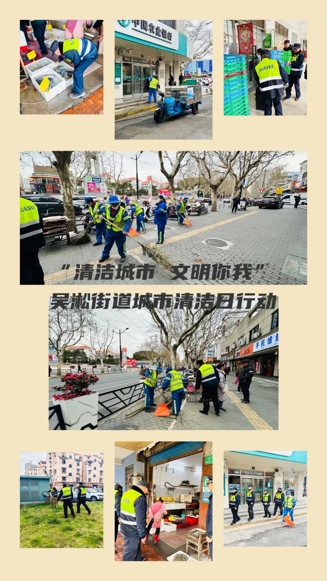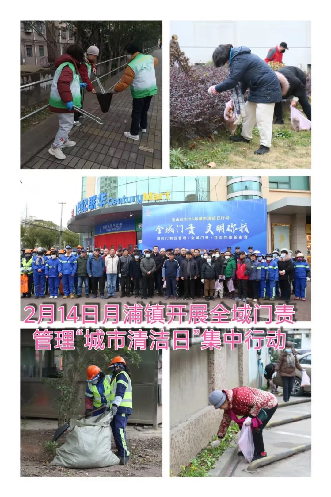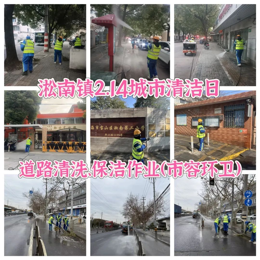 淞南镇组织全体机关干部、综合行政执法队员、25个居民区及志愿者、镇环卫市容保障力量参与2月宝山区“城市清洁日”行动。机关干部对淞南路、淞良路、长江路路段人行道路面等公共区域开展深度清洁;居民区工作人员和社区志愿者对小区环境进行全面整治;镇综合行政执法队督促沿街商铺严格落实门责制,劝导整改跨门营业、乱堆物、乱停车等不文明现象;镇环卫市容专业力量对淞肇路、长江西路薄弱区域道路及校园周边开展深度清洁冲洗和保洁作业。