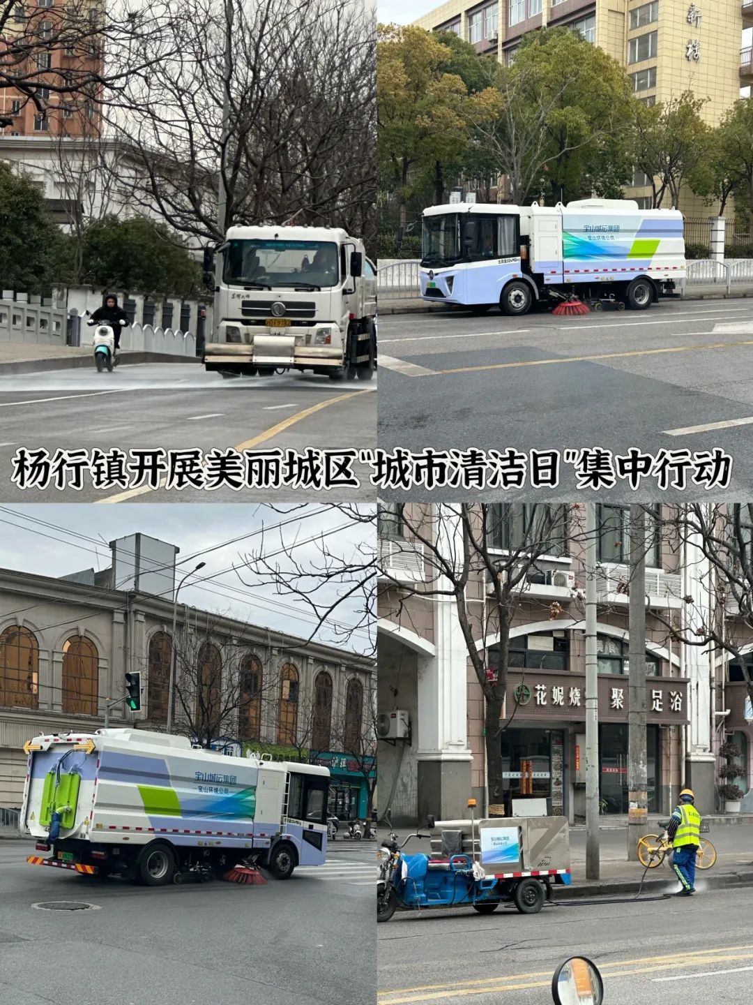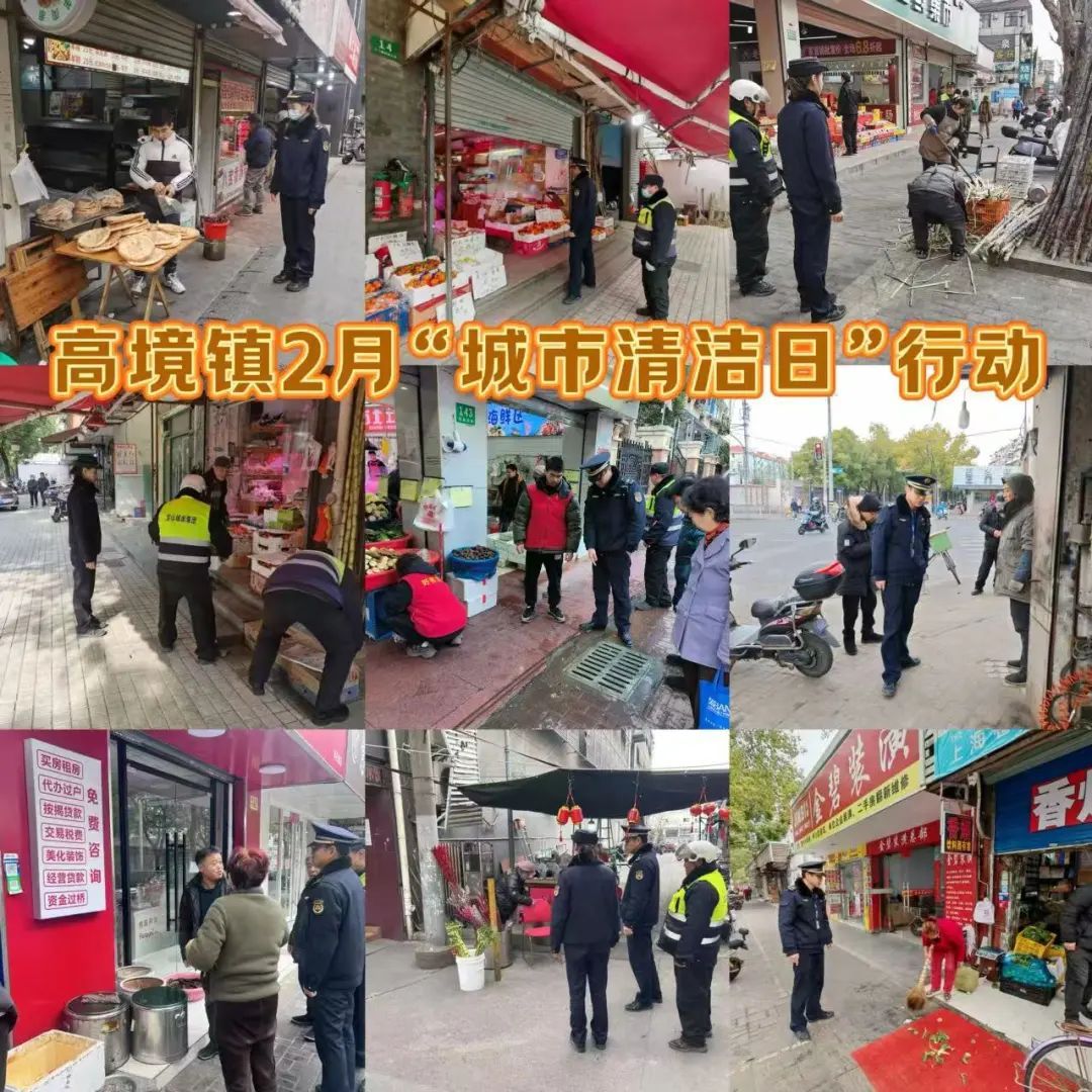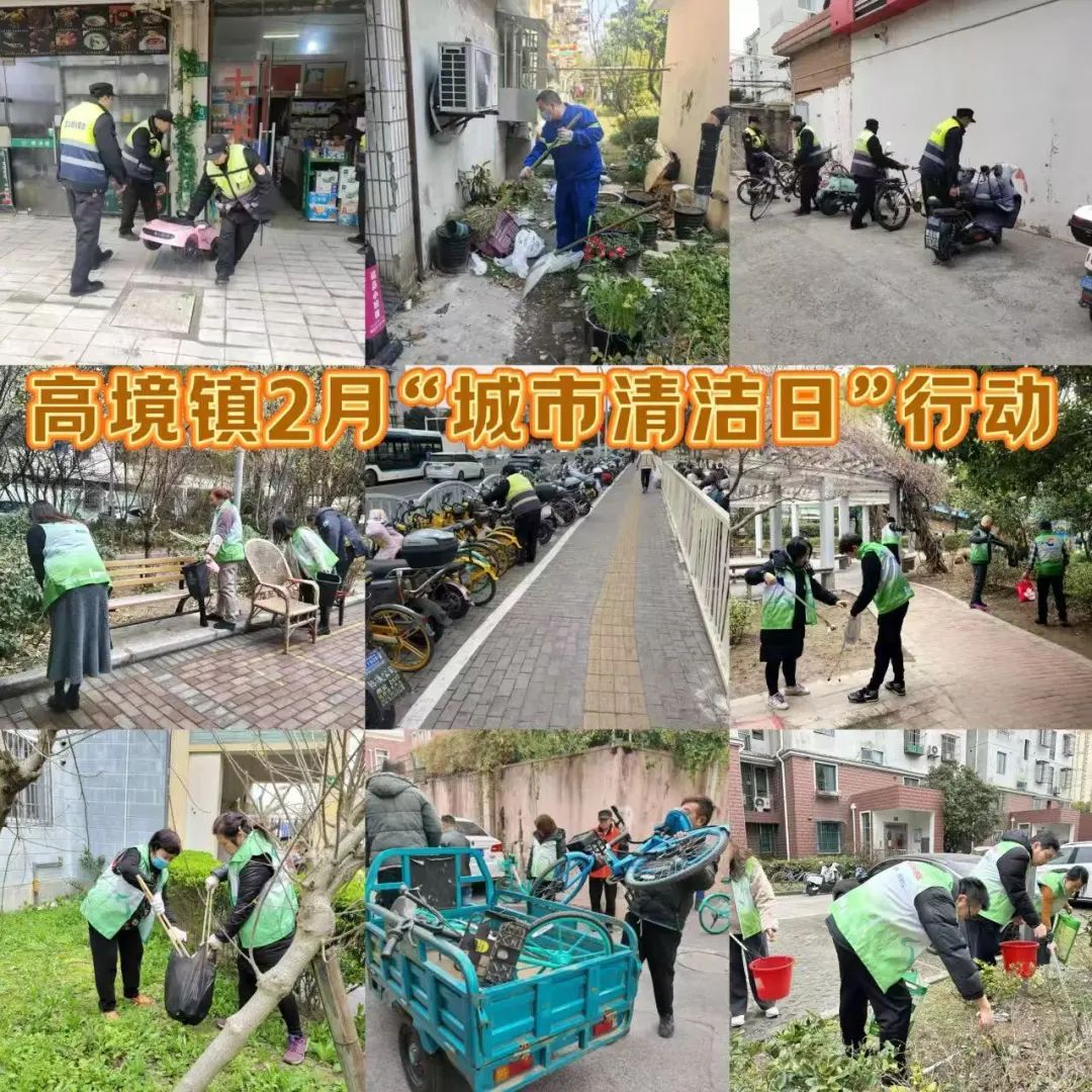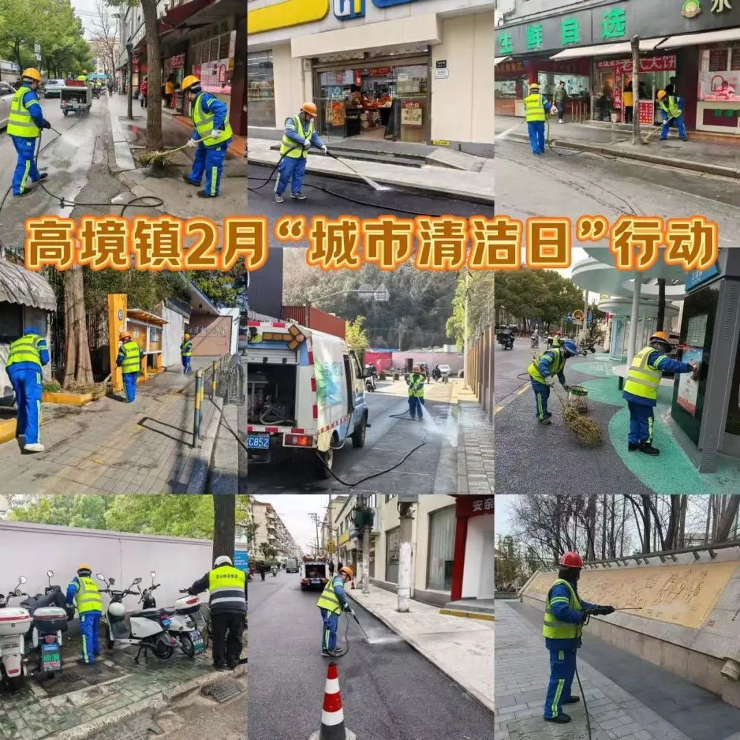 高境镇组织综合行政执法队、高境环卫、各居民区、街区商户以及社会志愿者等各方力量积极广泛参与。行动中,镇综合行政执法队加强街面治理与门责宣传,动员沿街商户落实门前环境整治责任,指导商铺经营者关注门责自律,做好门前责任区环境“三包”。高境环卫对主次干道、街坊里弄、绿化带等公共区域进行全面冲洗,大面积清除垃圾堆积,精细化清理顽固污渍,提升道路整体洁净度。各居民区、物业对社区家园进行集中清扫,为新一年的城市面貌提升开好头、起好步。