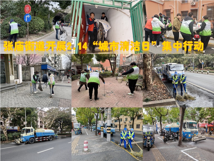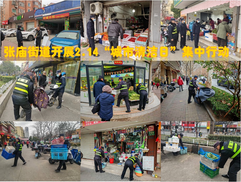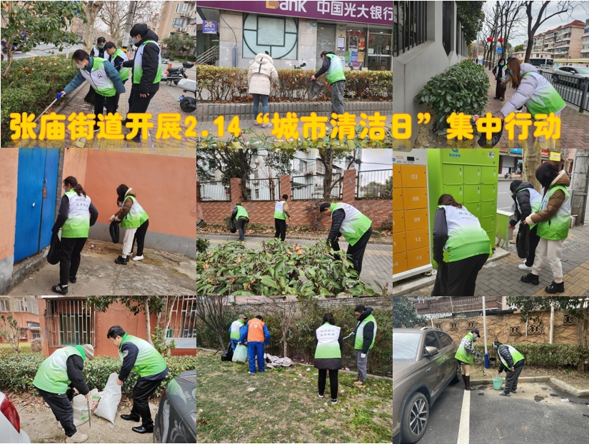 张庙街道组织全体机关工作人员、居民区及相关职能部门围绕呼玛路、通河路等重点路段和区域开展“城市清洁日”集中行动。机关、企事业单位和驻区单位的志愿者们对道路上沿街、绿化带等区域的环境卫生进行整治;综合执法队针对沿街商铺门责管理开展细致的现场督促整改和入户宣传工作,引导商铺经营者形成“主人翁”意识,自觉文明经营;居民区志愿者们积极参与,重点清洁小区路面、绿化带等区域,集中整治楼道乱堆物、乱张贴等现象。