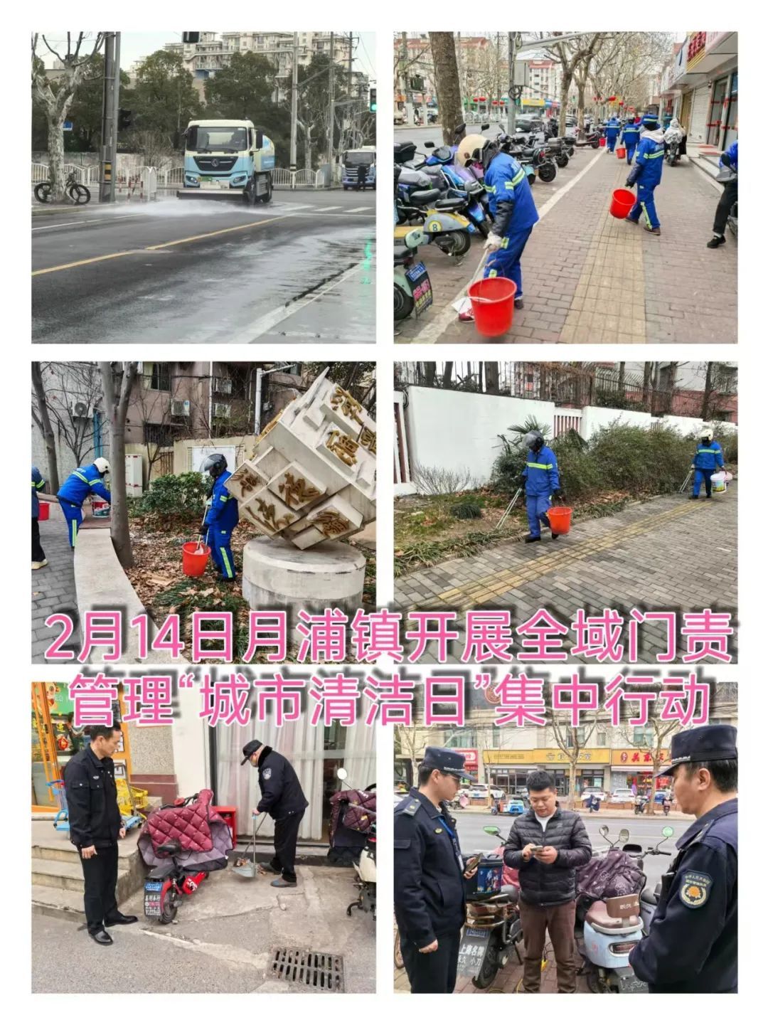 月浦镇组织镇建管中心、镇行政综合执法队、月罗环卫等单位围绕主干道、中小道路、公共场所、市政设施和城市家具,开展“城市清洁日”集中行动。各部门针对全域门责、垃圾分类、飞线充电、非机动车乱停放、堆物、商铺门责进行专项整治。月罗环卫及第三方养护部门,针对绿化带、隔离带及隔离护栏和路边的油污、泥沙及垃圾等问题,进行精细化冲洗保洁工作。各文明单位、村、居同步开展清洁日行动,围绕居住区、单位门面周边,进行集中清洁整治行动。