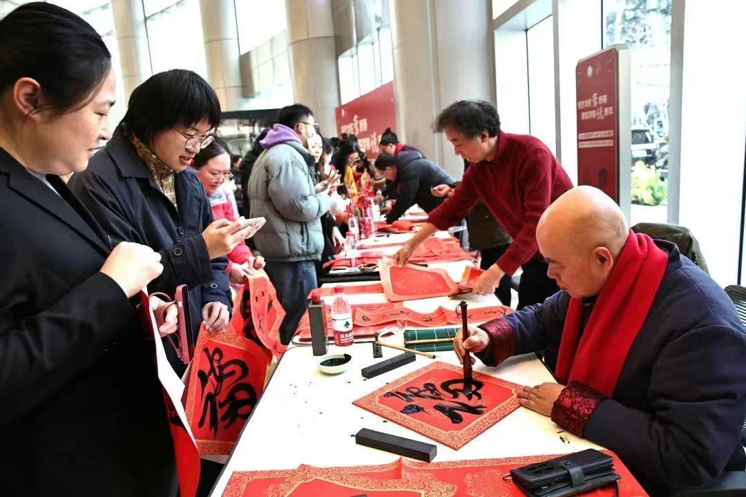 此外,区书协还与区总工会、区拥军优属基金会、区妇联、滨江党建·金融外滩等多家企事业单位合作,开展了多场迎新春写春联送祝福公益活动。书法家们走进社区、楼宇、企业、军休所等地,为市民送上新春祝福,营造了浓厚的节日氛围。