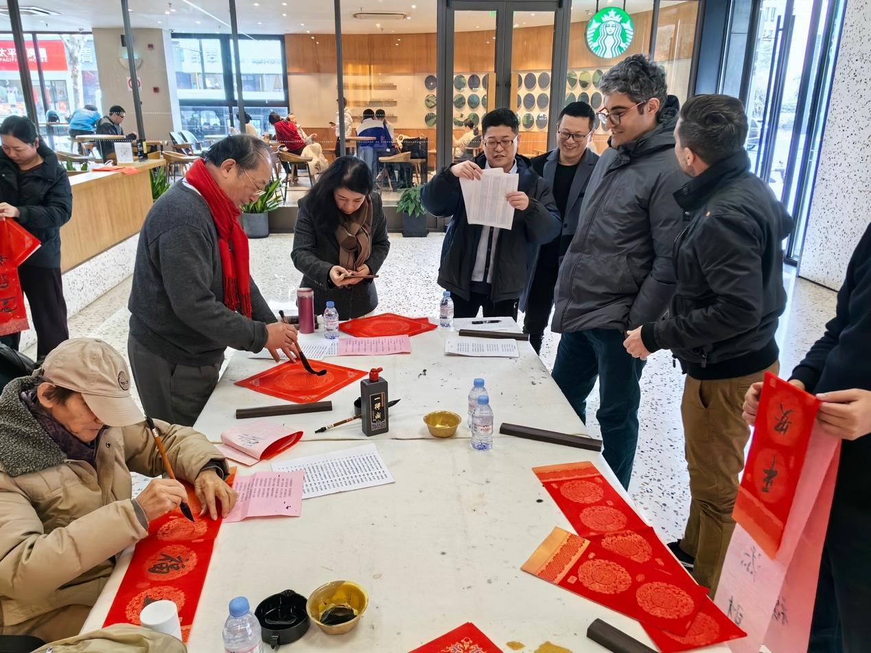 在区书协的积极组织下,仅淮海中路街道就在新天地商圈的无限极大厦、香港广场等楼宇连续举行17场专场活动,其他街道也先后多次开展写春联送祝福活动。每场活动现场气氛喜庆热烈,市民们纷纷有序排队领取并表示:“不仅感受到了浓浓的年味,也近距离领略了书法艺术的魅力。”