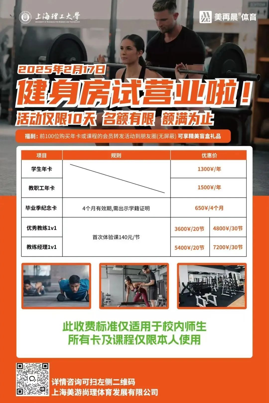 在全民健身热潮不断高涨的当下,学生们对健康生活的追求愈发炽热。上海理工大学体育健身中心健身房即将试营业,为学校体育健身中心注入了新的活力。它不仅是一个健身场所,更承载着学生们对健康体魄和美好生活的向往。新手小白在健身时需要注意哪些?听听专业建议↓