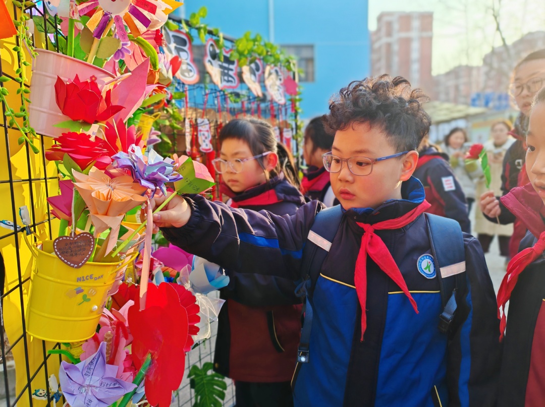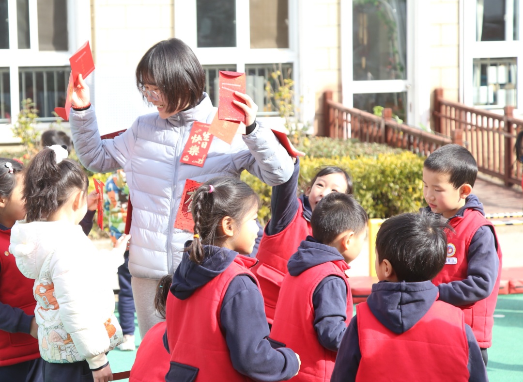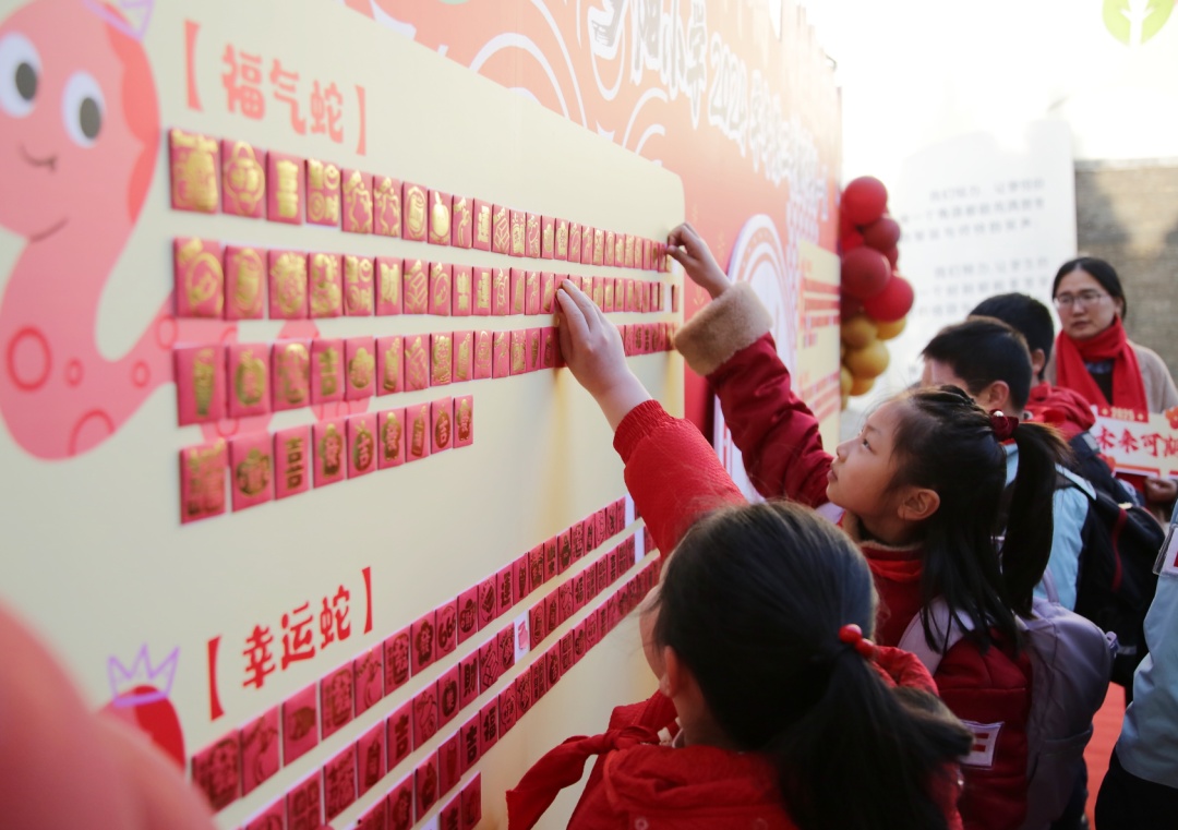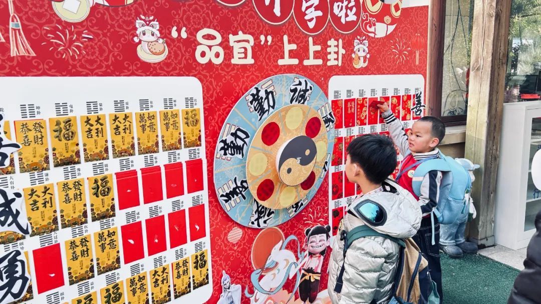 罗阳小学“阳洋大转盘”前热闹非凡。学生们兴奋地转动着大转盘,期待着能够抽取到新年“非物质奖励”大红包。当转盘缓缓停下,大家领取属于自己的红包时,脸上都露出了灿烂的笑容。老师们还精心准备了蛇年贺卡,学生热情地与老师拥抱,场面十分温馨。