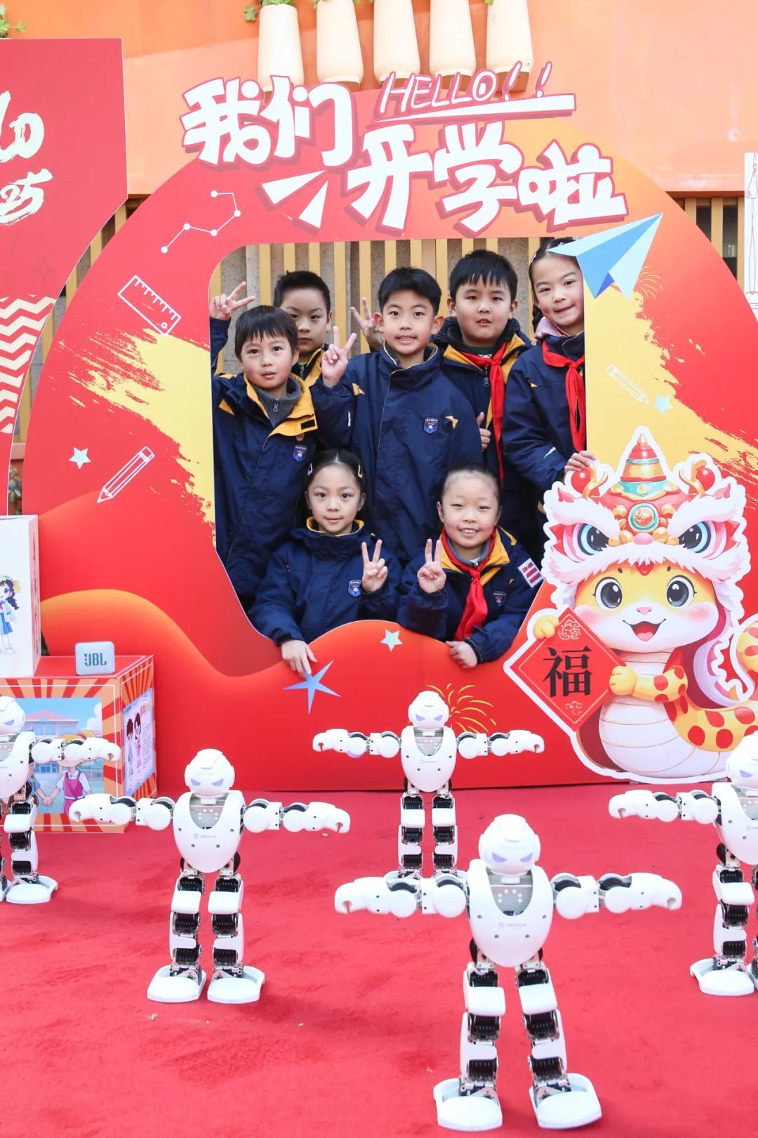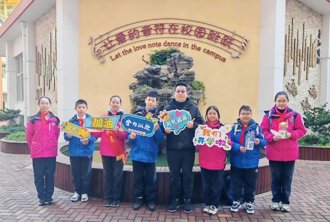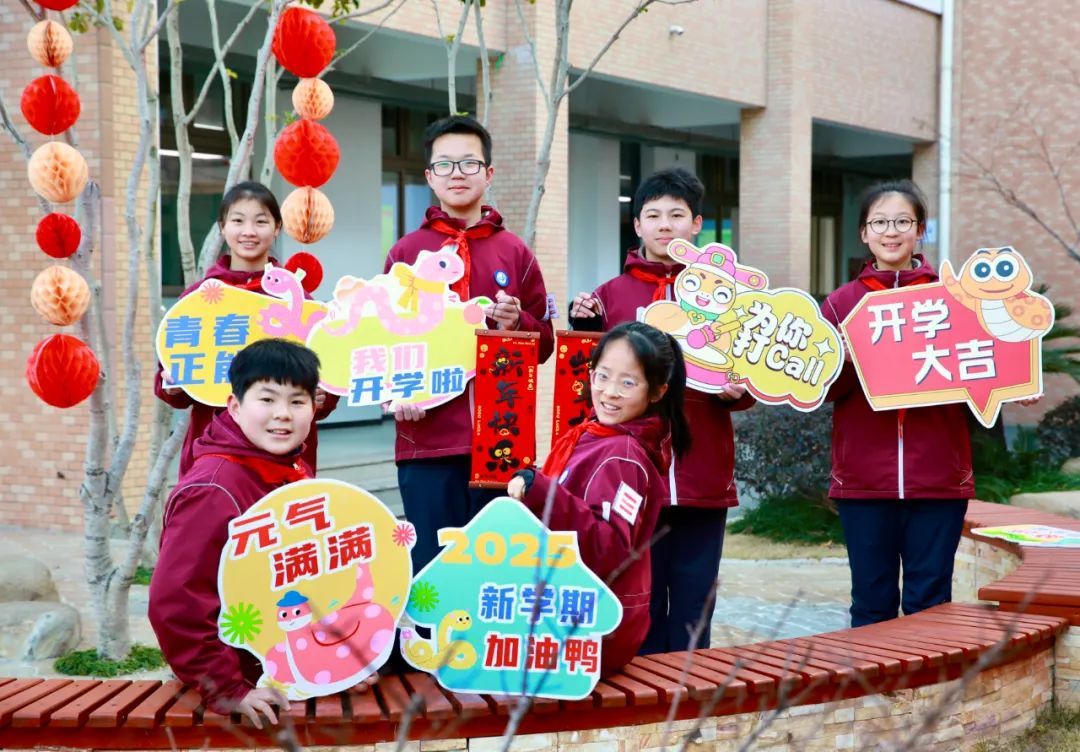 开学当日,晨光熹微,礼仪队的同学们如灵动的小蛇,身姿挺拔,笑容灿烂,早早守候在校门口。他们手中鲜艳的彩旗随风舞动,似在热情地召唤着同学们归来。这一刻,校园的大门成了梦想启航的港湾,师生们的重逢充满了温馨与喜悦。新学期伊始,七宝鑫都的校园里迎接同学们返校报到的仪式感满满,班主任精心策划别开生面的开学仪式。有的班级桌上摆满了包含着励志书签,手写祝福和能量饮料的定制礼袋;有的班级用激励卡拼成“加油”字样,以“击掌接力”仪式启动新学期;有的班级班主任组织宣传委员提前布置好板报和欢迎祝福,并组织学生代表畅谈新学期,传递温度和力量。上海市闵行区诸翟学校精心策划了“乙巳新年送祝福”“美好愿望往前冲”“鼓声隆隆志气扬”“共赴书海启新程”等迎新活动,营造积极向上的开学氛围。全体师生将以饱满热情迎接新学期,共创辉煌未来。启音学校的学生们在校领导的迎接下开启美好新学期,并与小伙伴们合影,留下开学第一天的美好画面。开学典礼上,有新校长的深情寄语,有启音娃向老师们拜年的温暖视频,有对寒假优秀学员的隆重表彰,还有八年级学生的精彩诗朗诵……师生们共同开启新学期健康快乐的新旅程。供稿:一品漫城幼儿园 君莲幼儿园 马桥实验幼儿园 浦江宝邸幼儿园 康城幼儿园 上海交通大学附属闵行吴泾幼儿园 平阳小学 景东小学 罗阳小学 文来外国语小学 华星小学 莘光学校 闵行四中 北桥中学 航华中学 七宝中学附属鑫都实验中学 诸暨学校 启音学校