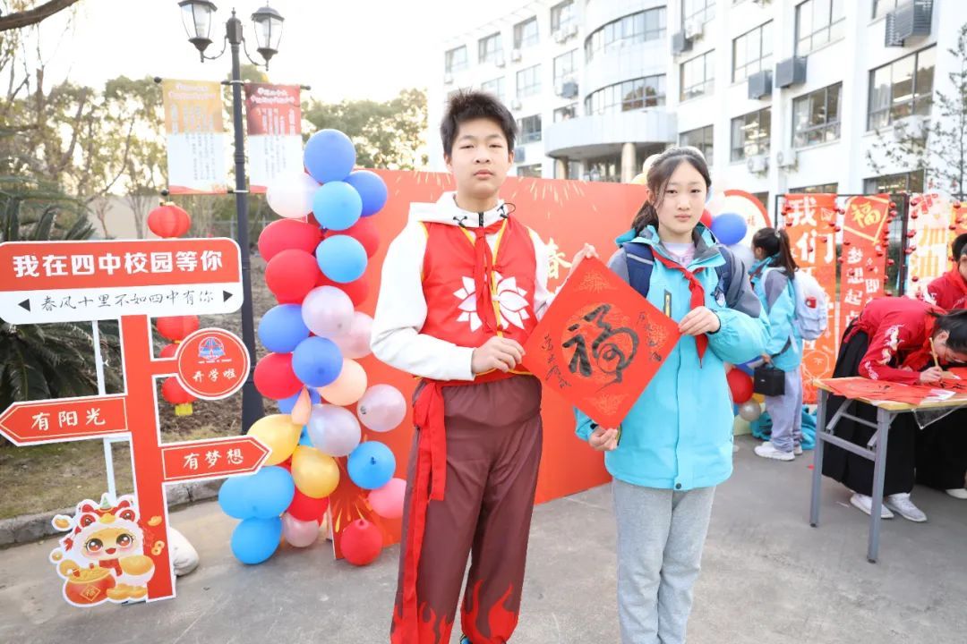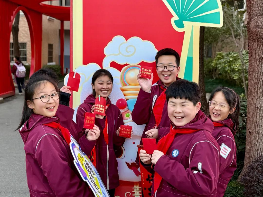 晨光破晓,闵行四中鼓号队在校门口奏响奋进的乐章,元气满满的“小哪吒”,脚踩“风火轮”,将红彤彤的福字送到师生手里,老师们捧着定制文创列队相迎。当萌趣传统遇见青春创意,当师长祝福化作具象礼物,开学季的仪式感在相视而笑的刹那绽放成永恒记忆。蛇年早春,北桥中学的校园里满是蓬勃的活力与朝气。同学们迈着轻快步伐,怀揣憧憬走进校门,开启新学期的第一天。校行政团队笑意盈盈,为大家送上开学红包。小小的红包装满了老师们沉甸甸的祝福与殷切期待,愿同学们新学期如灵蛇般坚毅,无畏向前,收获成长。