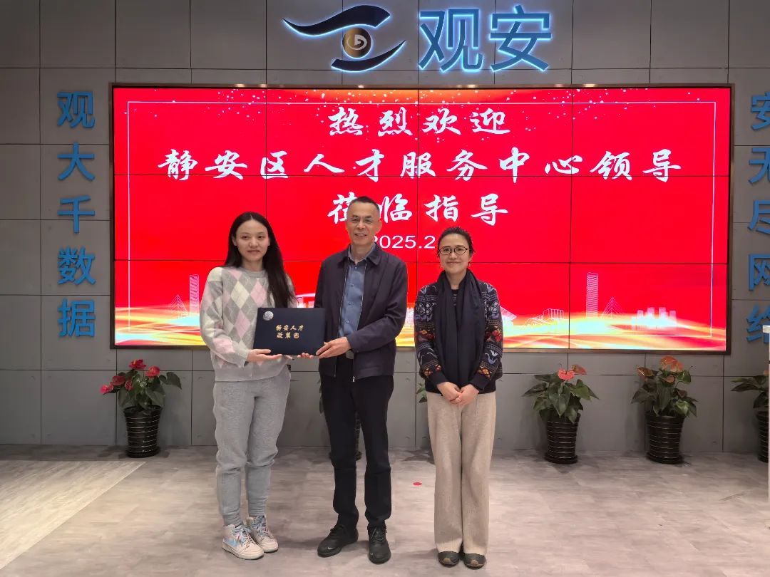 在客户培训部总监黄建文的带领下,区人才服务中心首先参观了公司的荣誉墙,了解企业发展历史和历年大事件,并听取公司在核心技术和产品的介绍。参观结束后,观安信息党支部副书记、产教融合事业主任分别介绍了企业党支部的建设情况和人才培养及产教融合的相关情况。企业负责人表示,最近几年企业发展势头迅猛,公司每年都会引进一批优秀人才,因此员工在落户方面的政策疑问较多。此外,企业培训学院近年来培养了大批维护网络安全的高技能人才,愿意为区域企业输送优秀人才。在听取了企业相关介绍后,区人才服务中心主任林海首先向观安信息介绍了中心的人才服务职能,并结合企业人才的特点简要介绍了人才引进落户政策,并现场解答了企业在落户业务办理方面的疑问。在人才输送方面,林海主任表示,将借助中国人力资源产业园在静安的区位优势,为企业在人才输送方面提供专业力量。