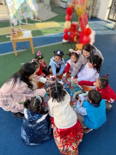开学首日,一个可爱的人偶出现在了长宁实验幼儿园的门口,孩子们纷纷惊喜又兴奋地与其招手。祝福盲盒、秘密红包,进入教室后,同样惊喜不断,孩子们晒晒小红包,说说吉祥话,在各种小礼物中收获欢乐与祝福。