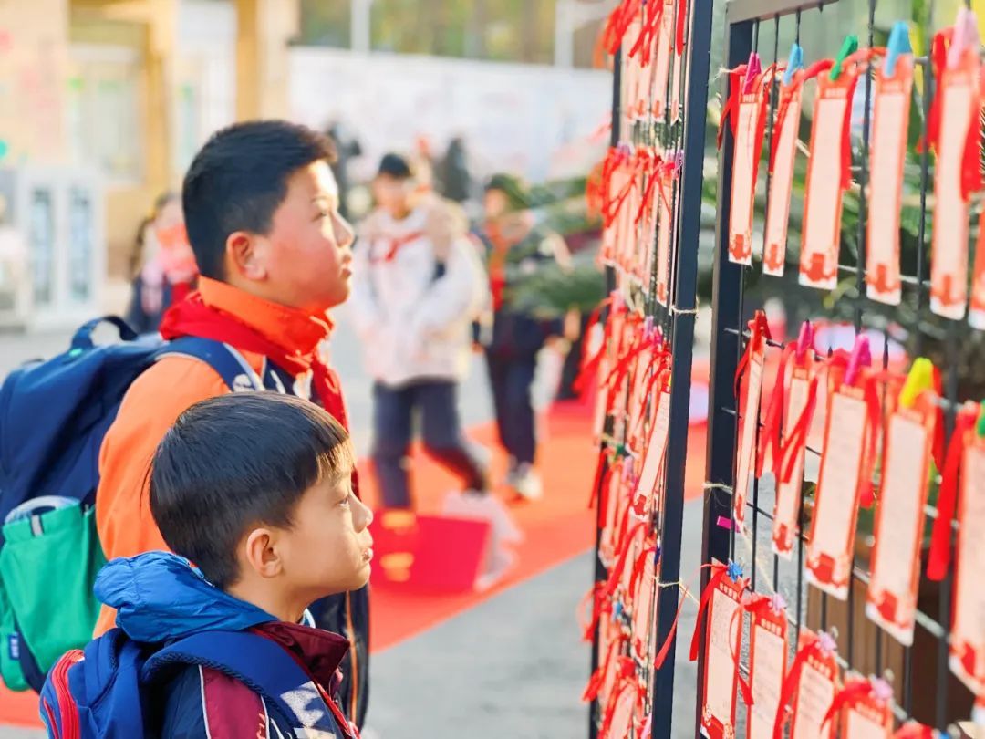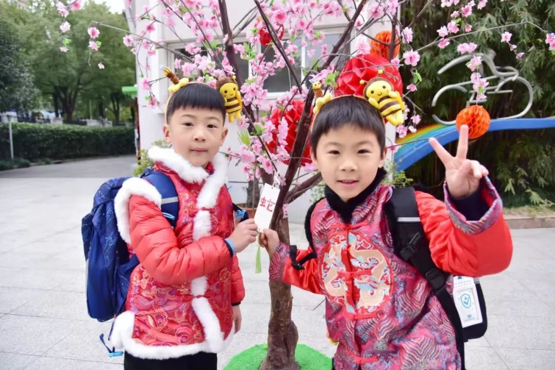 在欢快的音乐声中,上海市普陀区长征中心小学的同学们带着自己的心愿签来到校园的桃树下,仔细地挂在枝头。心愿签上,写满了他们对新学期的憧憬,对未来的美好期许。微风吹过,桃枝摇曳,心愿签随风飘动,仿佛在诉说着一个个美好的梦想。