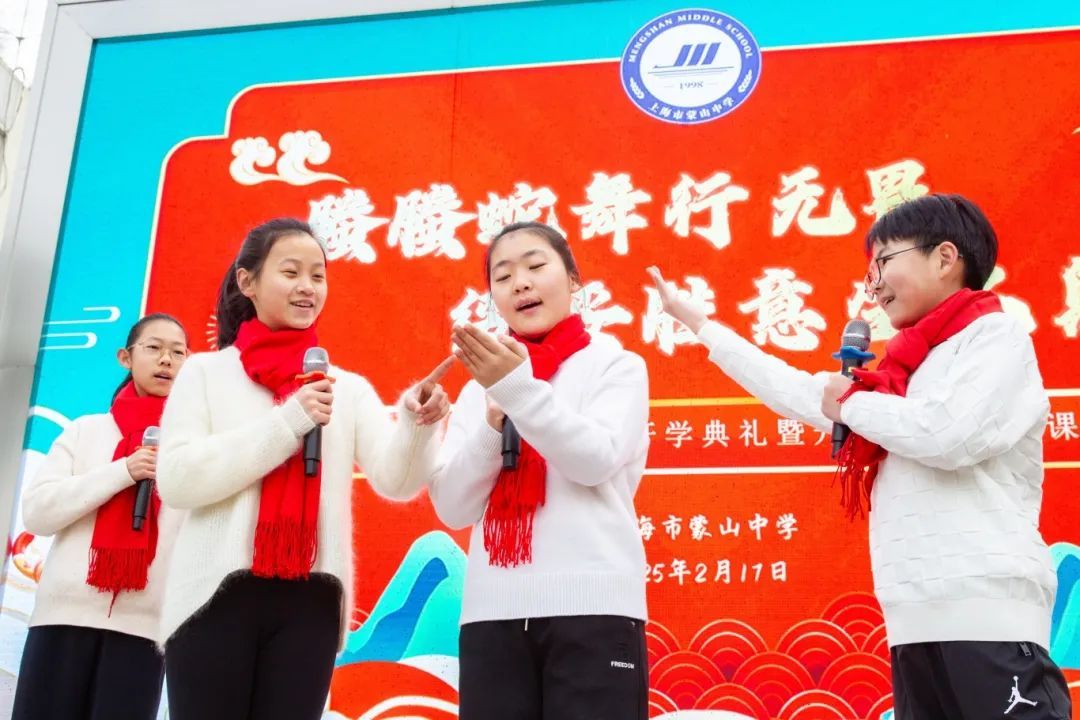 上海市蒙山中学举行“螣螣蛇舞行无畏,绥绥胜意生不息”开学思政第一课。同学们在吟诵《读中国》中见证祖国伟大成就,在唱响《那道光》中致敬中国科研功勋,在领学《科创启航,追光而行》中树立科技报国志向。