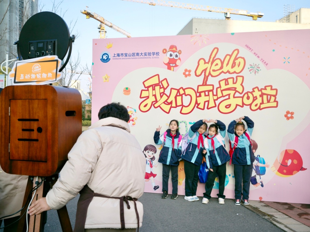 上海市金山区亭林小学校门口热闹非凡,身着红衣、扎着冲天髻、手持乾坤圈的“哪吒”活力满满,一旁的“哪吒”拍照框前大家都兴奋地排队打卡。以“文义少年志高远,巳巳如意启新程”为主题的开学第一课,为新学期拉开活力序幕 。
