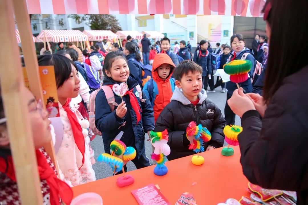 青浦区教师进修学院附属小学开学第一课温情启动。“小青椒”与导师携手传承非遗文化,共启新春篇章。校门口“灵珠送福”环节,学生们挑选福珠,与老师互赠祝福;“许愿莲花池”贴满稚嫩心愿,绽放成长期盼。师生分享年味糖果,校园笑语盈盈。