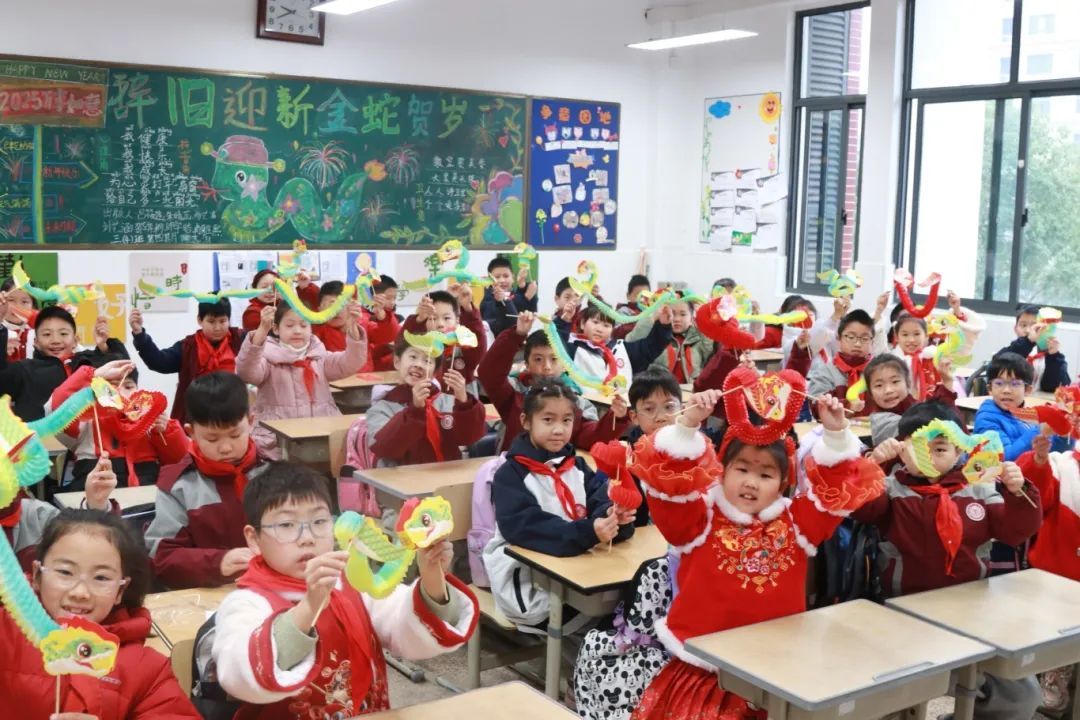 上海市沙田学校的同学们在风筝上勾勒活泼可爱的小蛇,在彩蛋上绘制福字,融入蛇年元素的设计在彩纸间飞舞,满含童趣和对新学期的憧憬,师生们在丰富多彩的活动中共同编织起传承中华优秀传统文化的纽带。