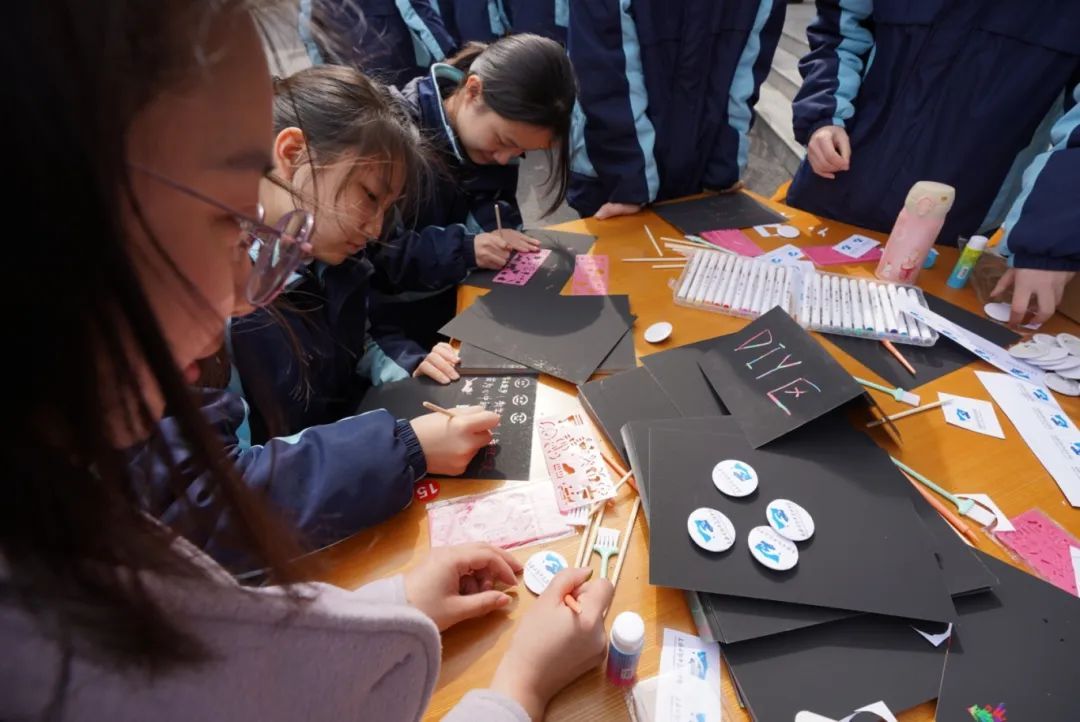 上海市新中高级中学的学子满怀憧憬踏入校园,在一场别开生面的开学活动中,共同见证成长的启航。“心愿树“前,学子们郑重写下新学年的目标与期许,一张张承载志向的笺纸在春风中翩跹起舞。“指印成林”活动中,师生以朱砂为墨,随着指纹在树枝上渐次绽放,共同绘就象征薪火相传的苍劲校树,演绎“精神传承“的生动课堂。刮画区笔尖流转,勾勒出钟楼飞檐的岁月轮廓;徽章制作台前,银杏叶与校训文字交织成独特纹样。