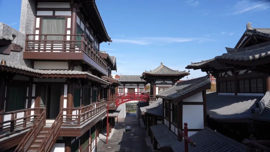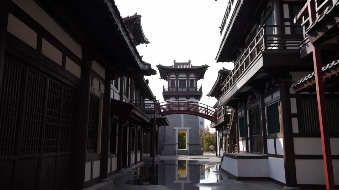 据介绍,古装基地总占地约4600平方米,其中外景部分占地2000多平方米,主要是由鼓楼的城墙、九曲桥、状元府以及状元府内景等部分组成。“古装片区采用的是隋唐风格,隋唐风格以其不张扬、不浓烈的特点著称,避免了过于标志性的图文或绚烂色彩,为剧组提供了更为广阔的创作空间。”上海国际短视频中心商务经理侯楠楠表示,“这一设计初衷正是考虑到大多数剧组的需求,因为很多古装剧情往往是架空的,需要一种既符合历史韵味又不失灵活性的场景来承载。”