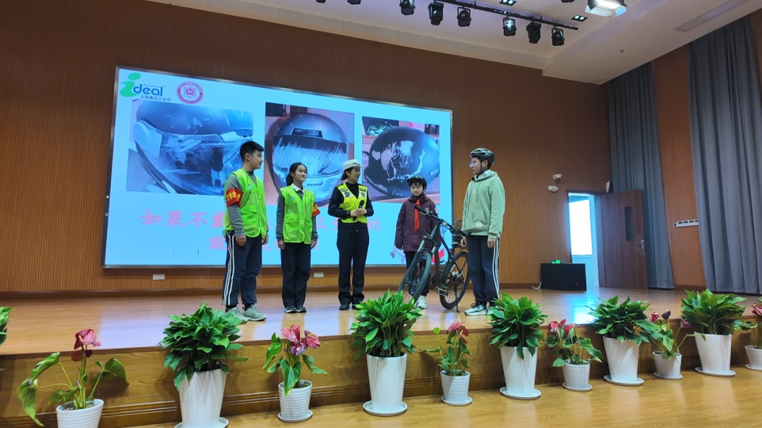 在共享头盔有序投放的同时,当天民警还走进校园,为同学们带来一堂生动的交通安全课,详细介绍如何挑选头盔、头盔的正确佩戴方式及注意事项,并向学生们发放宣传单,鼓励同学们争当“一盔一带”的宣传者和践行者。