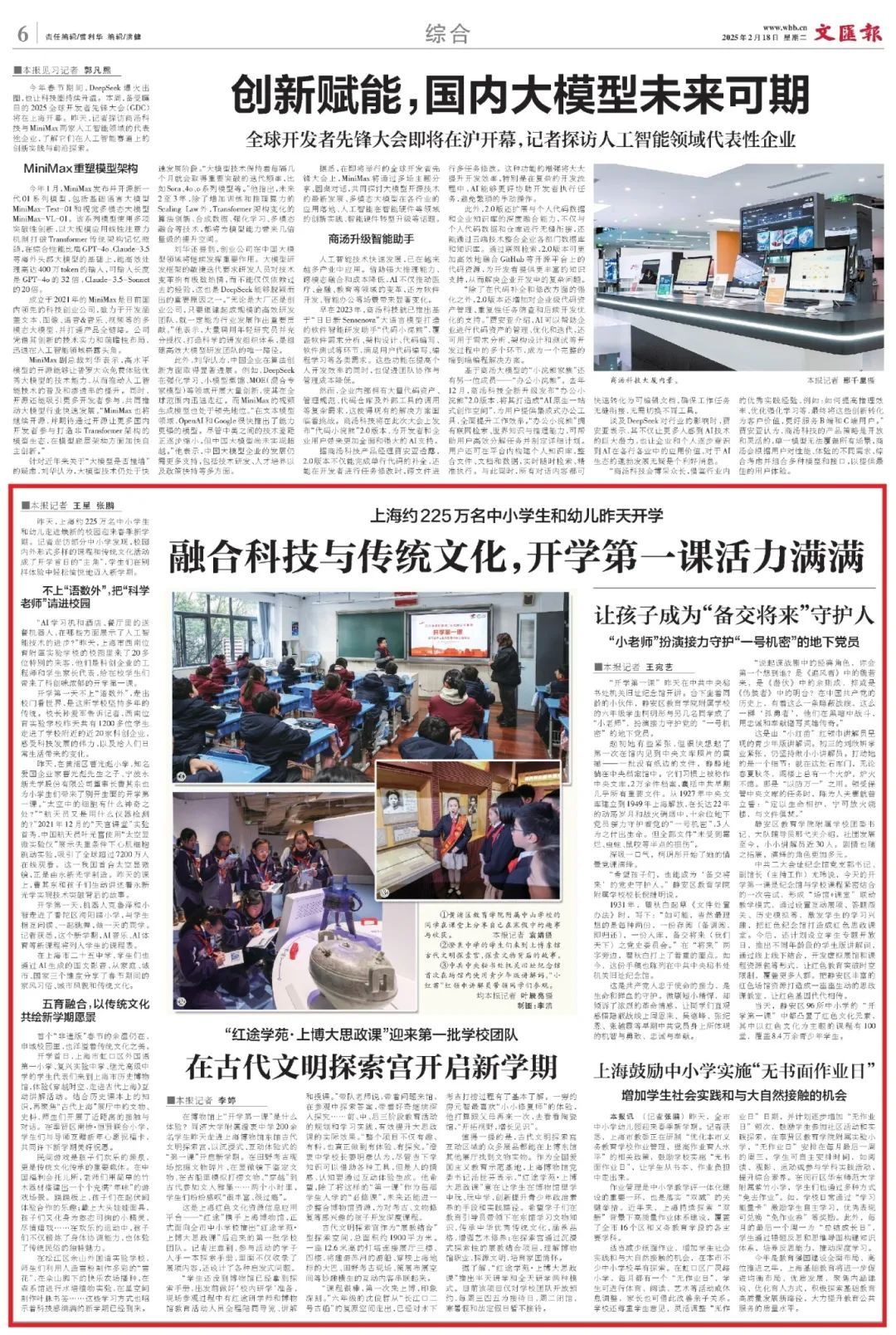 昨天,上海约225万名中小学生和幼儿走进焕新的校园迎来春季新学期。记者走访部分中小学发现,校园内外形式多样的课程和传统文化活动成了开学首日的“主角”,学生们在别样体验中轻松愉悦地迈入新学期。