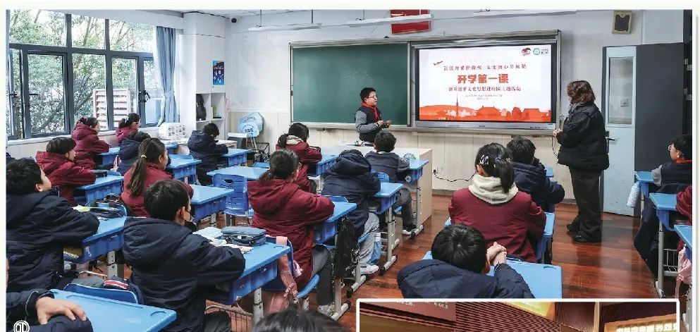 开学首日,上海市虹口区外国语第一小学、复兴实验中学、继光高级中学的学生代表们来到上海市历史博物馆,体验《穿越时空,走进古代上海》互动讲解活动。结合历史课本上的知识,再聚焦“古代上海”展厅中的文物、史料,师生们开展了近距离的接触与对话。在奉贤区南桥·恒贤联合小学,学生们与导师互赠新年心愿祝福卡,共同许下新学期美好祝愿。