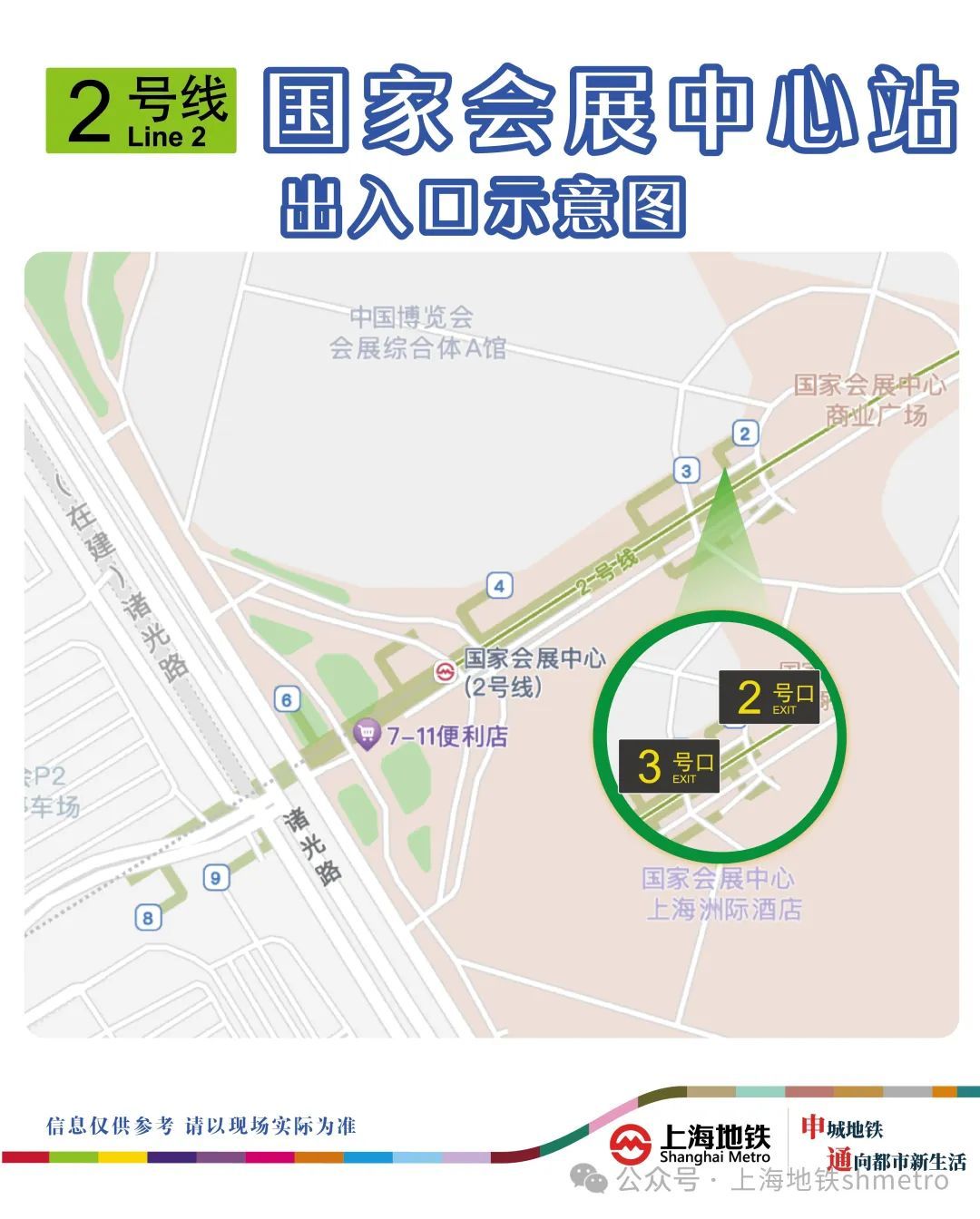 为配合国家会展中心展会安全管控需求,2号线国家会展中心站2、3号口将于2025年展会期间2月20日-12月31日分时段进行车站出入口管控措施,展会期间每日运营开始至当日19:00时段对2、3号出入口实施临时关闭,19:00后调整为只出不进模式。