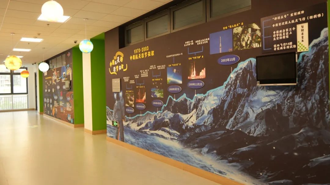 鉴于宏星集团“科创见长”教育优势以及校本科技课程,学校规划设计了主题为“了不起的中国航天”的科技长廊。漫步航天长廊,师生跨越时空,了解中国航天的发展史,参观学习的同时还可以在互动版面留言。