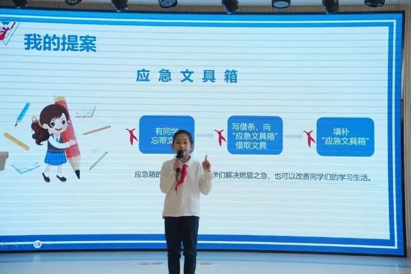 学校不断丰富建言渠道,支持“童言童议”,学生代表经过采访、记录、反馈同伴的意见,和老师一同商议学生午餐的选餐、春秋游活动地点的选择、研学活动的设计、学校空间的改造升级等,极大增强了孩子们的主人翁意识。