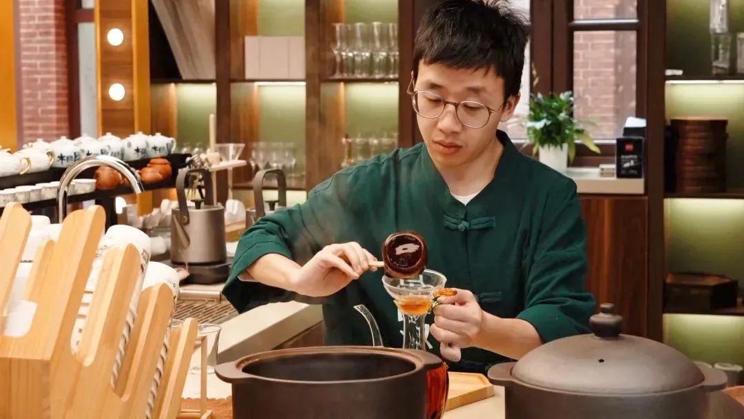 茶局设计精致,从一楼到四楼,一步一景,别有洞天。二楼设有小舞台,时常会有评弹等传统文化演出,让人在茶香中领略传统文化的魅力。三楼则是包厢区域,适合家庭聚会或商务宴请。最值得一提的是四楼的露台,从这里俯瞰乍浦路街景,将电影海报与现实生活完美融合,怀旧氛围感拉满。