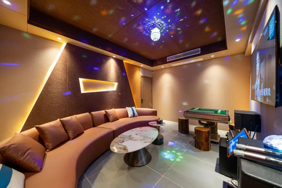 除了房间内的柑橘元素,民宿的庭院里也随处可见柑橘小饰品和相关介绍的文字。为进一步丰富游客们的休闲娱乐时光,三位“妈妈”还贴心地在民宿中设计了一个娱乐空间,KTV、麻将、电竞设备等娱乐设施,在这里都可以体验到。历时一年,经过她们一次又一次的细致调整,月心湾民宿终于在2023年正式开业。