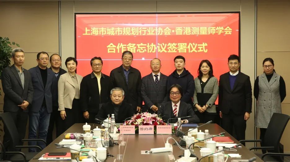 双方热烈的沟通交流后,张帆会长与林家辉会长共同签署了合作备忘意向书,标志着上海市城市规划行业协会与香港测量师学会正式开启交流合作的新篇章。双方将通过行业发展动态资讯的交流共享、规划业务与管理的交流与合作、规划从业人员的交流与互访等多种方式,共同探索沪港两地在城市规划和建设领域的协作路径。